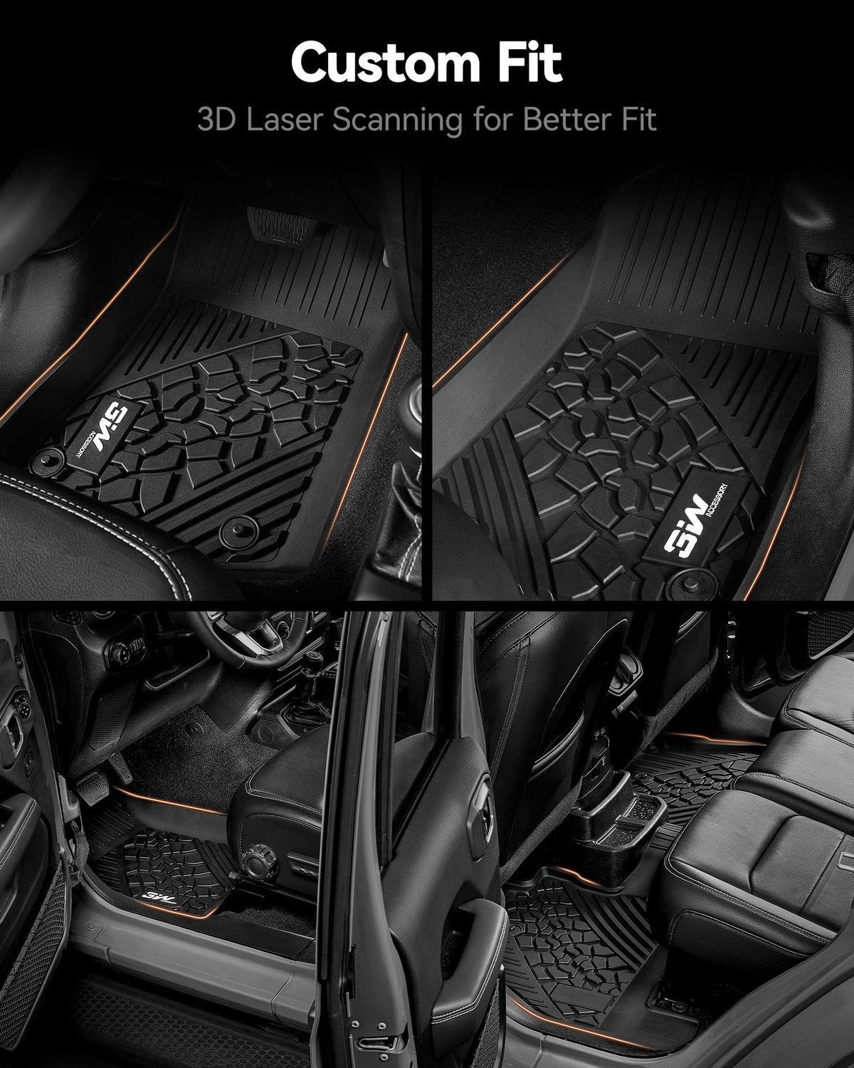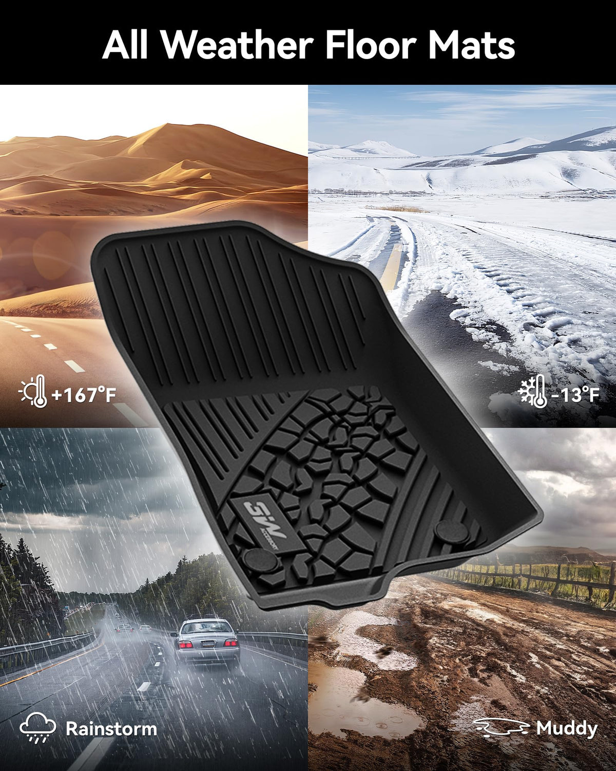3W Floor Mats & Cargo Liner Custom Fit for Jeep Wrangler 4XE 2021 2022 2023 2024 2025 (Non JL/JK), All Weather TPE Rubber Heavy