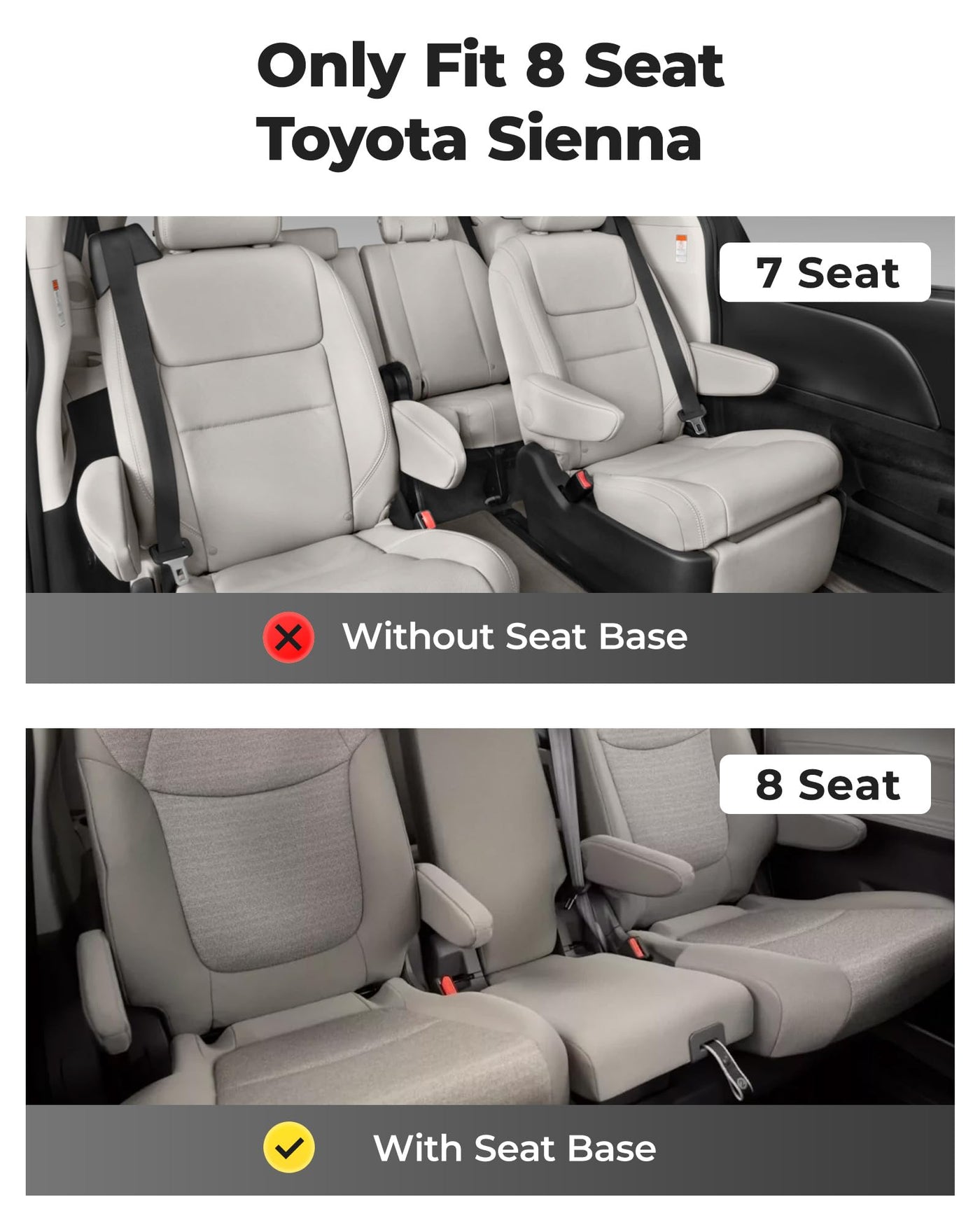Q: Are these floor mats compatible with the Toyota Sienna models from 2021 to 2025?A: Yes, these 3W floor mats are specifically designed to fit Toyota Sienna models from 2021 to 2025, including the 1st, 2nd, and 3rd rows and trunk. Please note that they are only compatible with the 8-seat configuration.