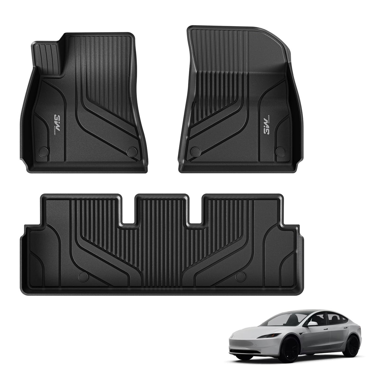 3W Floor Mats Fit for 2021-2023 Tesla Model 3, TPE All Weather Custom Fit Floor Liner 1st and 2nd Row Full Set Car Liners, Black