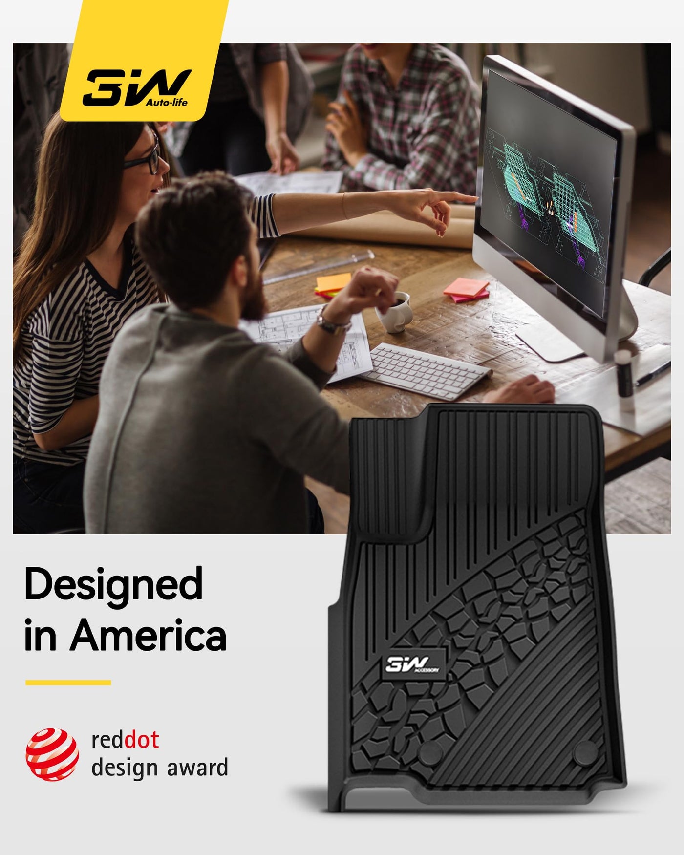 3W Auto Accessory Inc: 3W stands for Wonderful, Worldwide, Worthy. We are a company manufacturing floor liners/trunk mat with 25 years of history. We are one of the first companies in this filed to use TPE and injection molding to manufacture floor liners. The traditional floor liners are made by compression molding, which does not allow for many details, causing the floor liners/cargo liner to be rigid and stiff. 3W floor liners/cargo mat are designed with different patterns fitting the style of different models of cars. TPE material: 3W car mats are made from Thermoplastic Elastomers, which shows advantages of both rubbery materials and plastic materials thus having more strength, resilience, durability and elasticity. It has more outstanding thermal properties and material stability when exposed to an extreme temperature. 3W trunk mat has no odor even in extremely hot weather with all car windows closed, and can stay resilient in extremely cold weather. Some babys pacifiers are made from the same material. This design won the 2017 Red Dot award in Germany. Custom fit and easy to clean: Each 3W cargo liner is custom fit. We scan the interior of each car and computer design the pattern incorporating key elements of the vehicle, gives the trunk mat a customized look and feel, will match the interior of your car perfectly. The back of 54W floor liners are designed with air pockets to effectively absorb the noise from the chassis. In addition, every car liner has a raised containment walls protecting your vehicle from all kinds of mess. You can finish cleaning up the cargo liners within few minutes.
