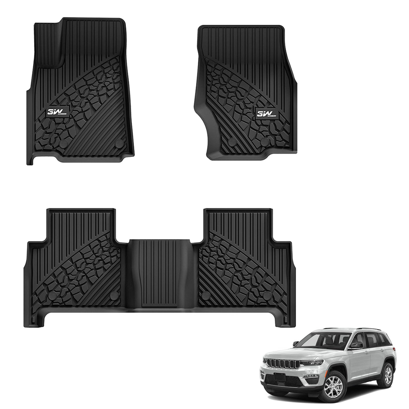 3W Floor Mats Fit For 2022-2025 Jeep Grand Cherokee (Non L Or Wk) Tpe All Weather Custom Fit Floor Liner 1St And 2Nd Row Full Se