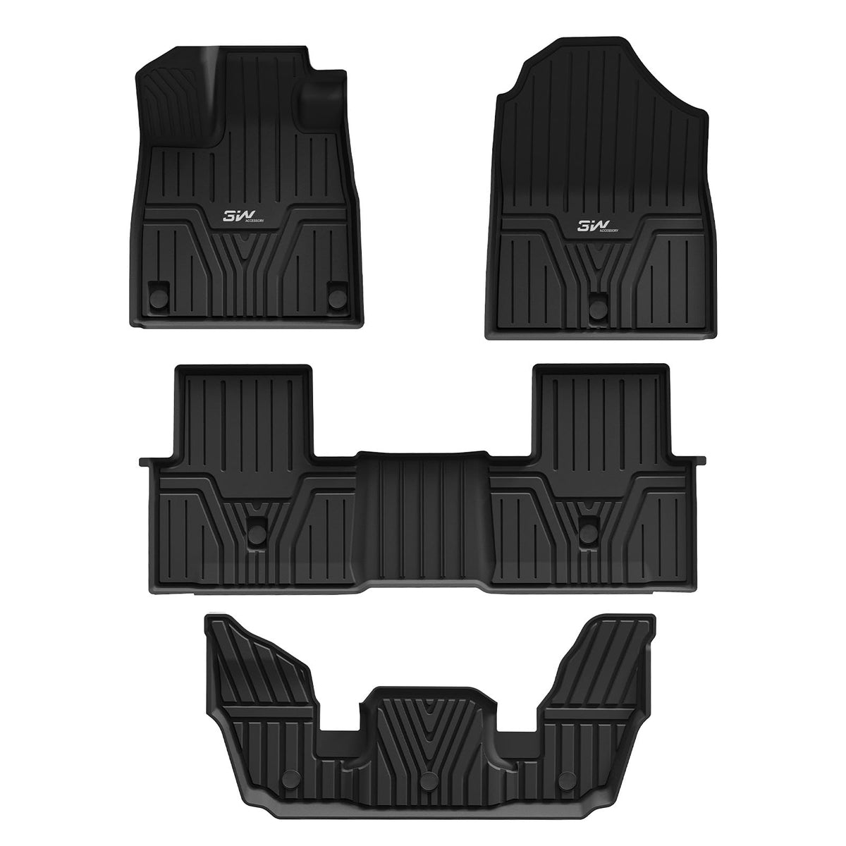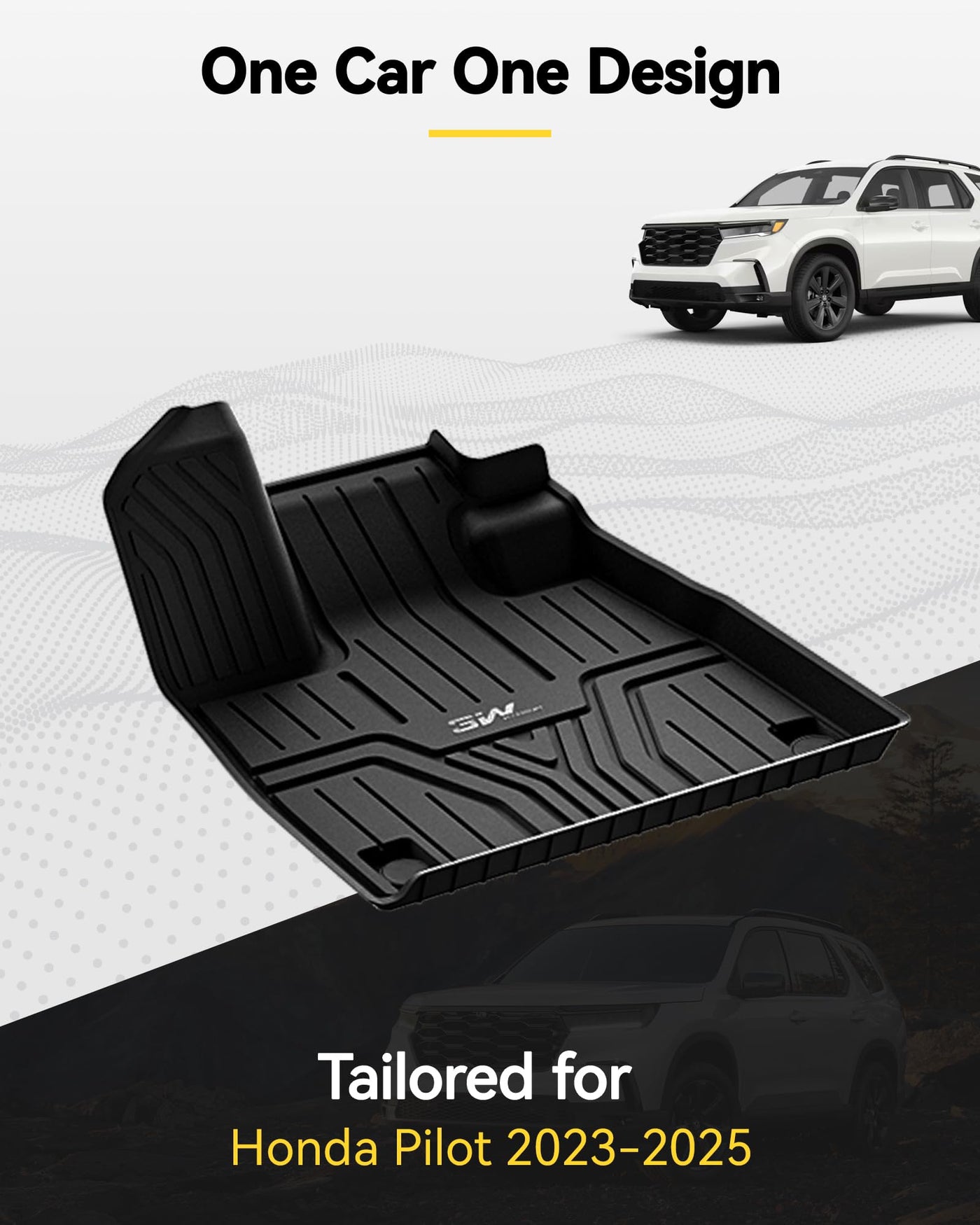 3W Floor Mats Fit For 2025 2024 2023 Honda Pilot, Custom Fit Floor Liner For 1St 2Nd And 3Rd Row Full Set Tpe All-Weather Car Li