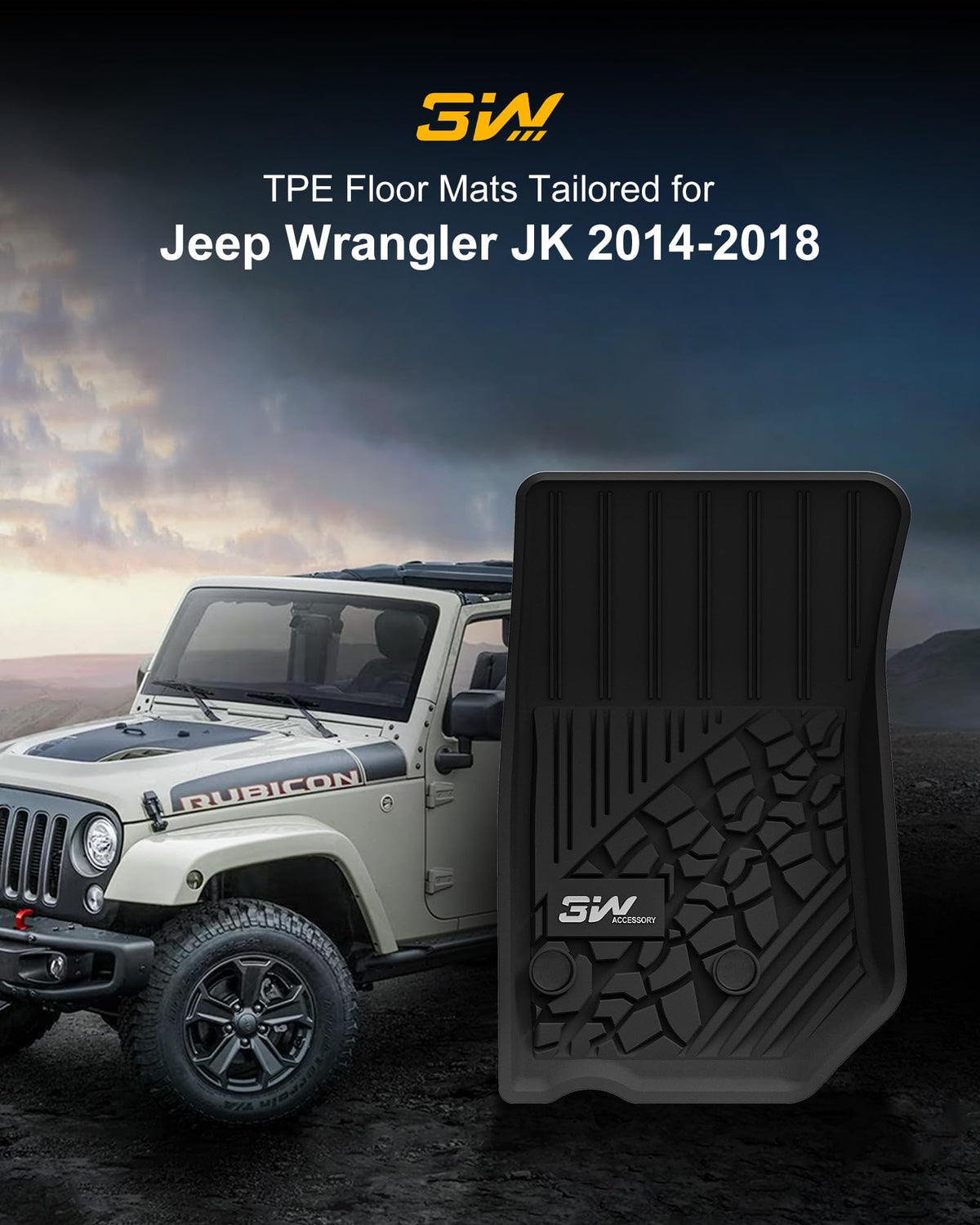 3W Floor Mats Fit for Jeep Wrangler JK 2013-2018 Unlimited 4 Door Only (Non JL or 4XE) TPE All Weather Custom Fit Floor Liner fo