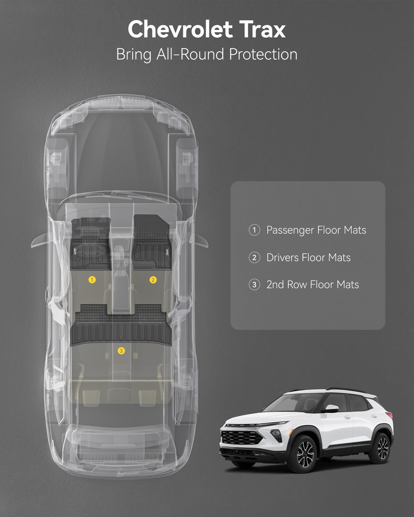 3W Floor Mats For Chevrolet Trax & Buick Envista 2024 2025, Tpe All Weather Custom For Trax 1St And 2Nd Row, Car Liners Accessor