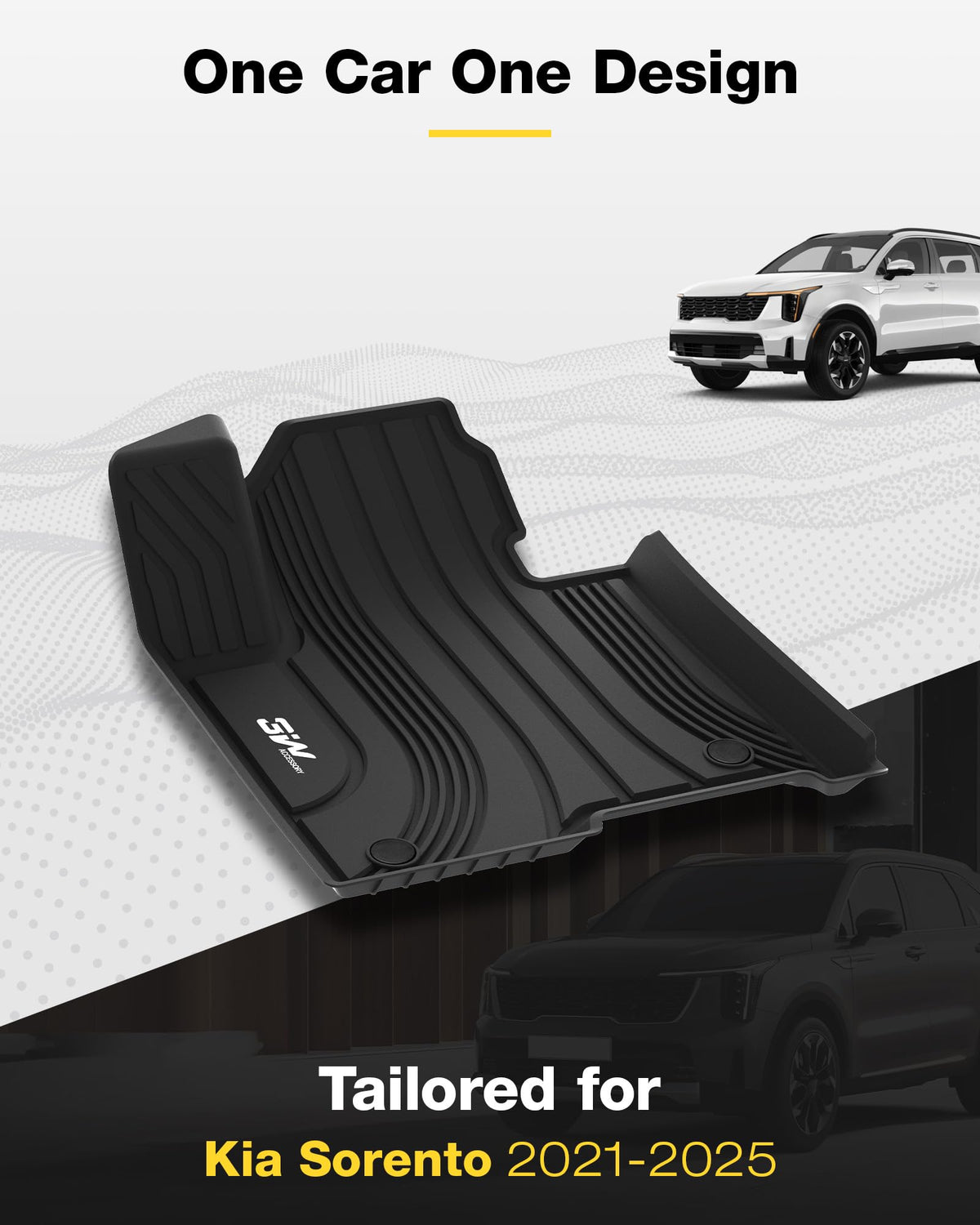 3W Floor Mats for Kia Sorento 2025 2024 2023 2022 2021 (Only for Hybrid) All Weather Protection TPE Anti-Slip Automotive Full Se