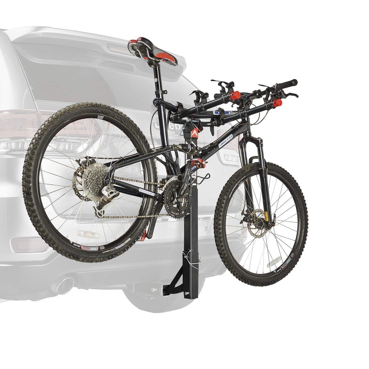 Carry Arm Spacing Accommodates A Wide Range Of Frame Sizes And Designs. Tie Down Cradle System Individually Secures And Protects Bikes. Carry Arms Fold Out Of The Way When Not In Use. Rack Tilts Back For Easy Lift Gate Access. No Wobble Bolt Eliminates Movement Of Rack Inside Hitch. All Retainers Clips Attached W/ Lanyards. Minor Assembly Required. Black Power Coat Finish.
