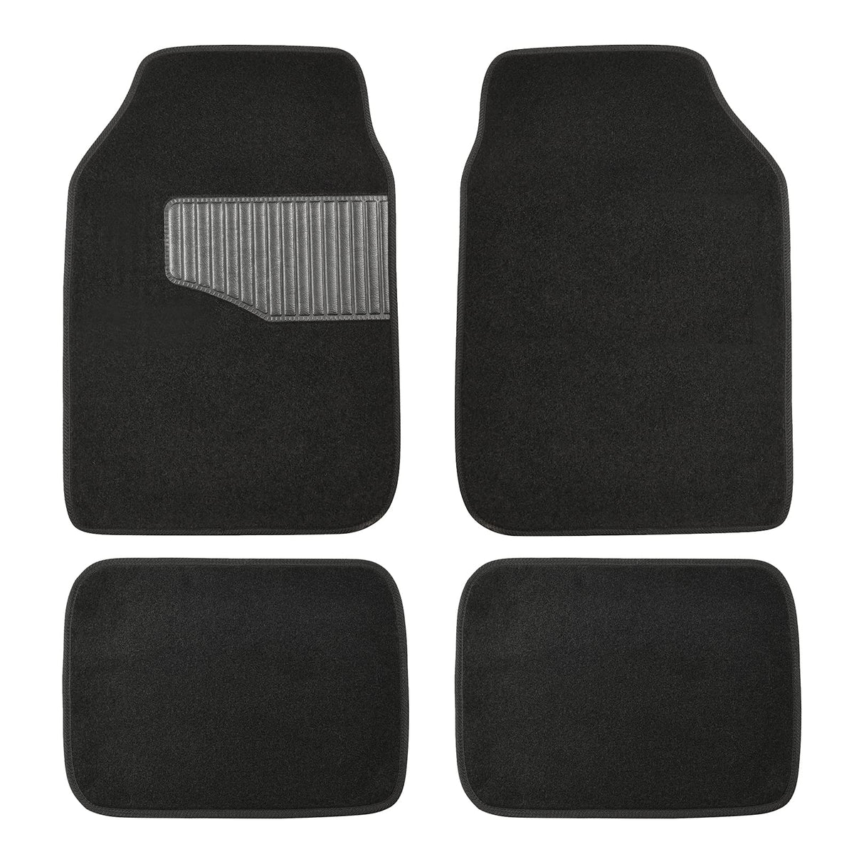 Amazon Basics Universal Fit Rubber Carpet Floor Mats For Car Suv Van & Truck, 4-Piece, Black, 25''L X 17.5''W (Front), 13''L X 1