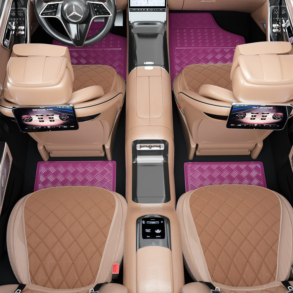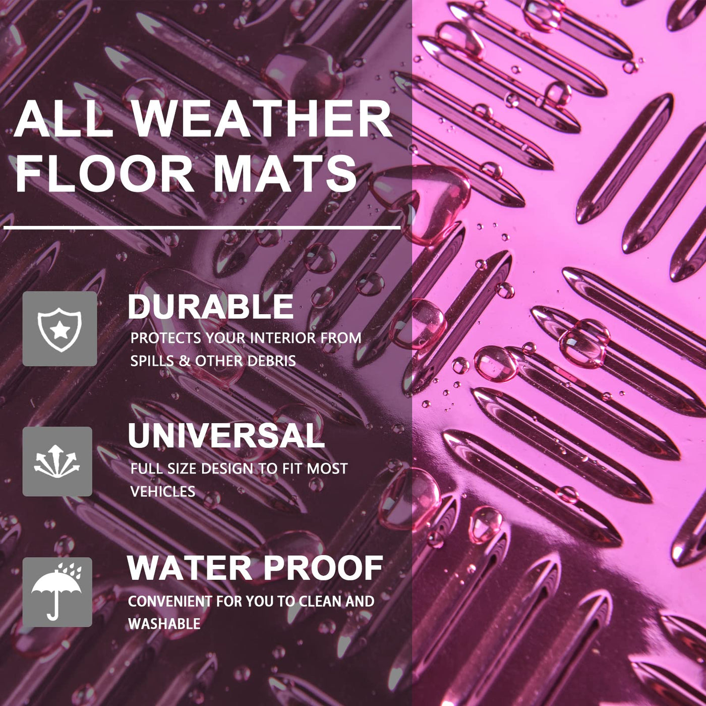 August Auto All Weather Aluminum Universal Fit Car Floor Mats Fit For Sedan, Suvs, Truck And Vans Set Of 4 (Pink)