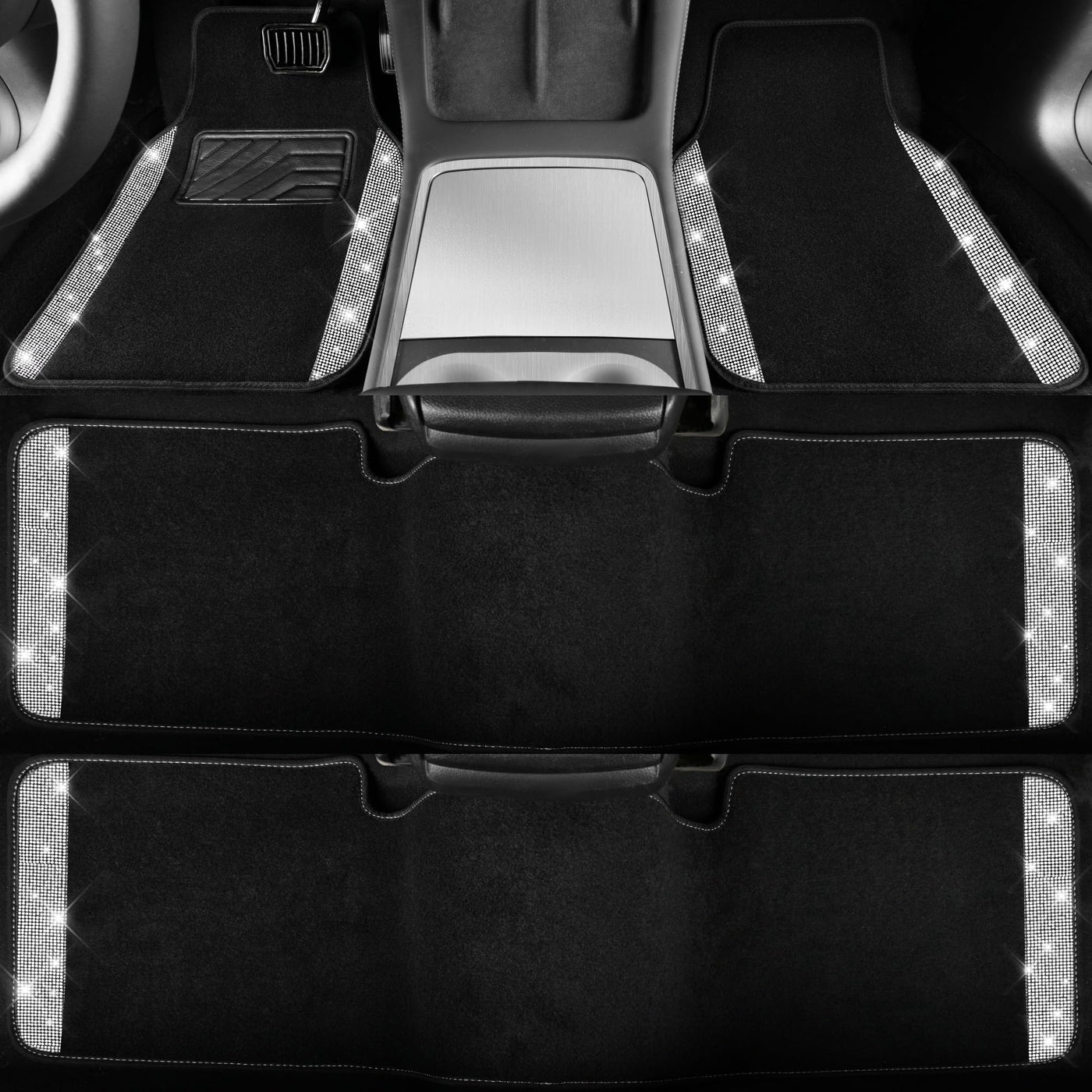 Car Pass Bling Car Mats Shining Diamond Carpet Crystal Rhinestones Sparkly Glitter Floor Mats Anti-Slip Pvc Heel Pad Universal F
