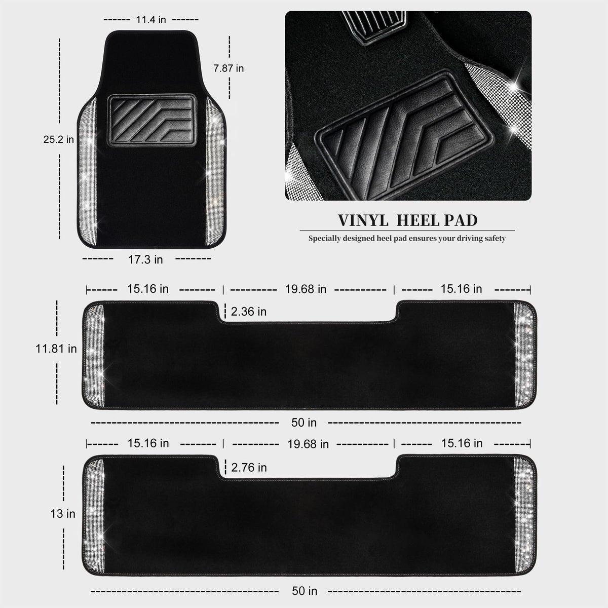 Q: What vehicles are compatible with the CAR PASS Bling Car Mats?A: The CAR PASS Bling Car Mats are designed with a universal size that fits most vehicles, including cars, sedans, SUVs, trucks, and vans. This versatility makes them suitable for various automotive types.