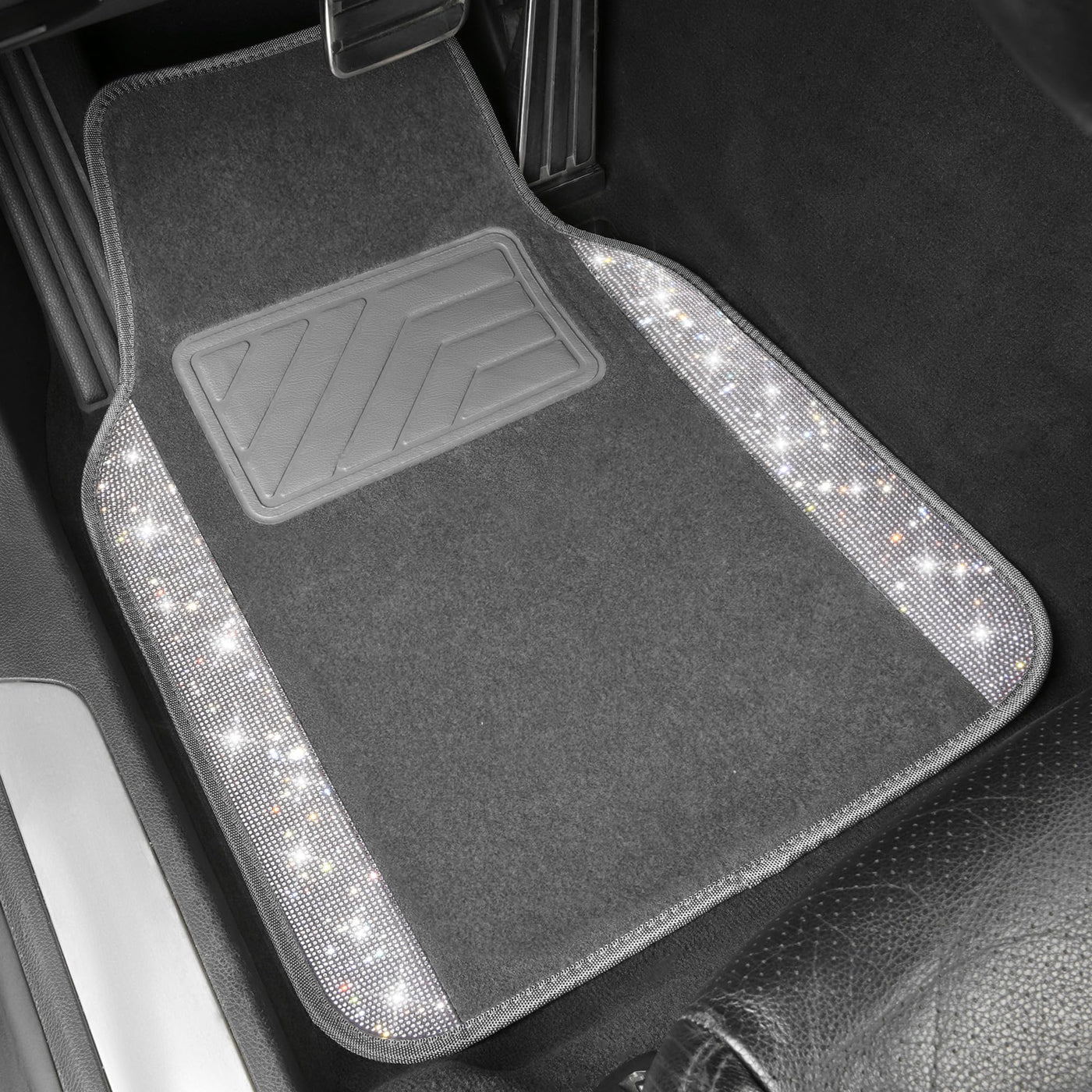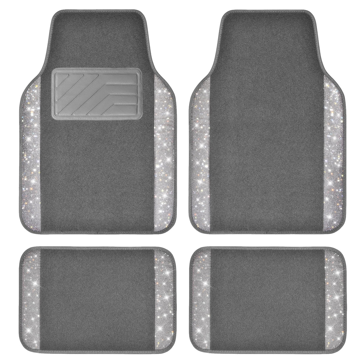 Q: What makes these mats a great gift for women and girls?A: These mats feature sparkling diamonds and a stylish gray carpet design that enhances the aesthetic of any vehicle, making them a perfect cute gift for women and girls who appreciate a touch of glamour in their car.