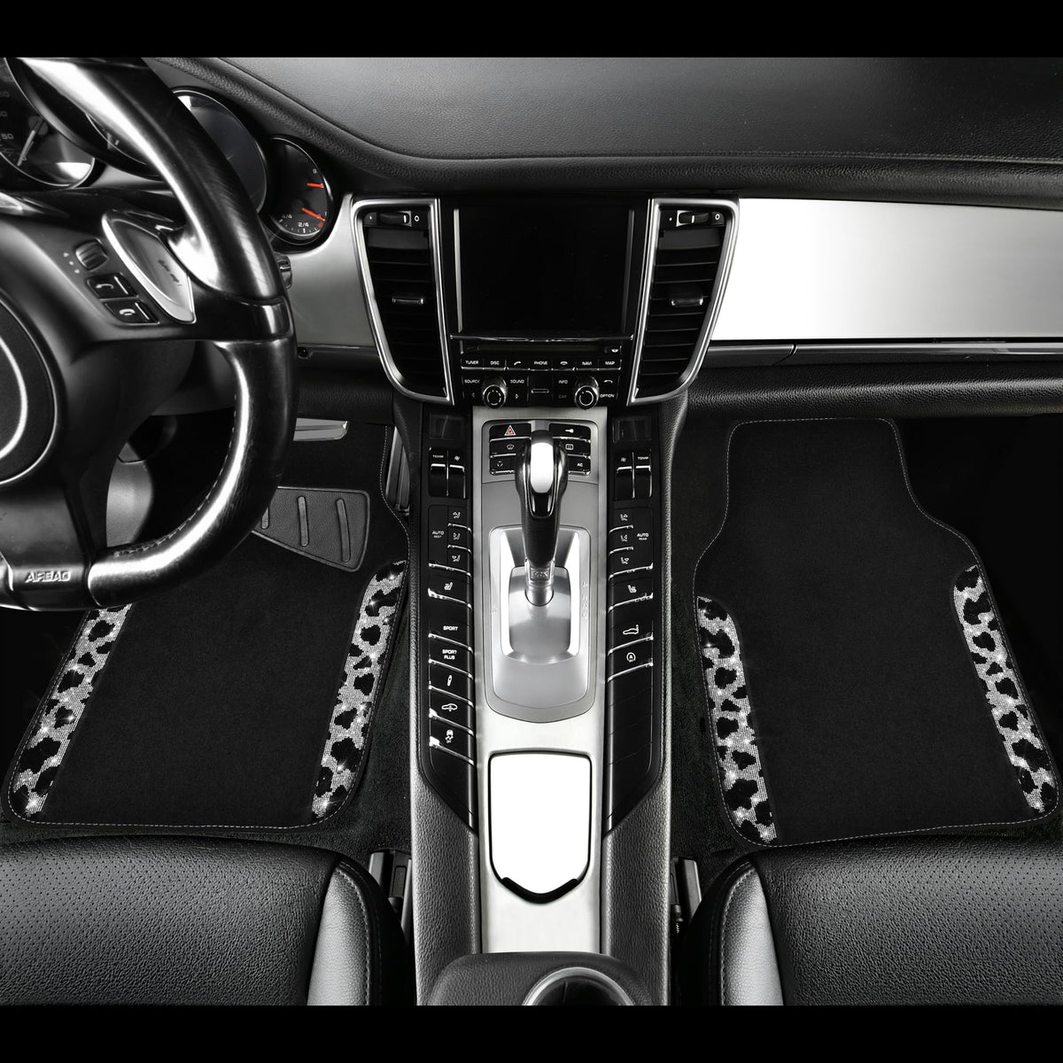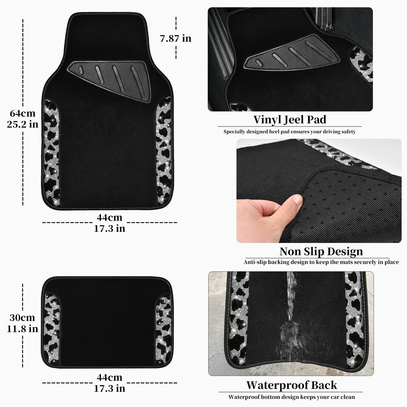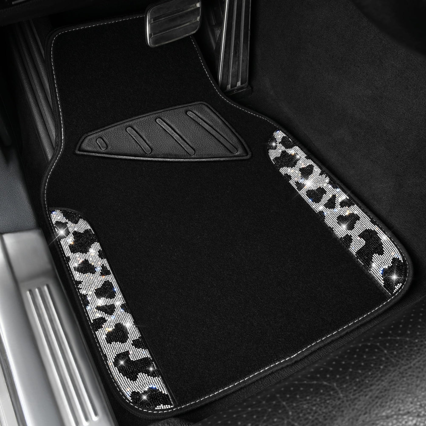 CAR PASS Bling Cow Car Mats Rhinestones Diamond Waterproof Floor Mat Crystal Sparkly Shining Glitter Carpet Anti-Slip PVC Heel P