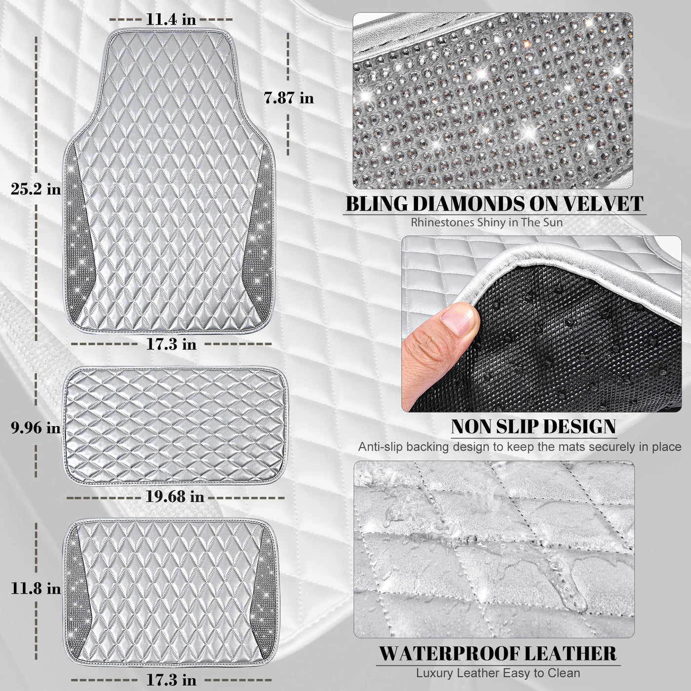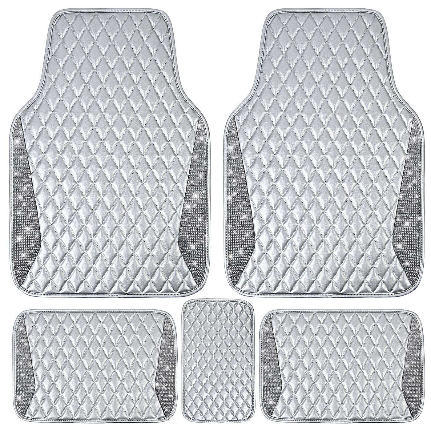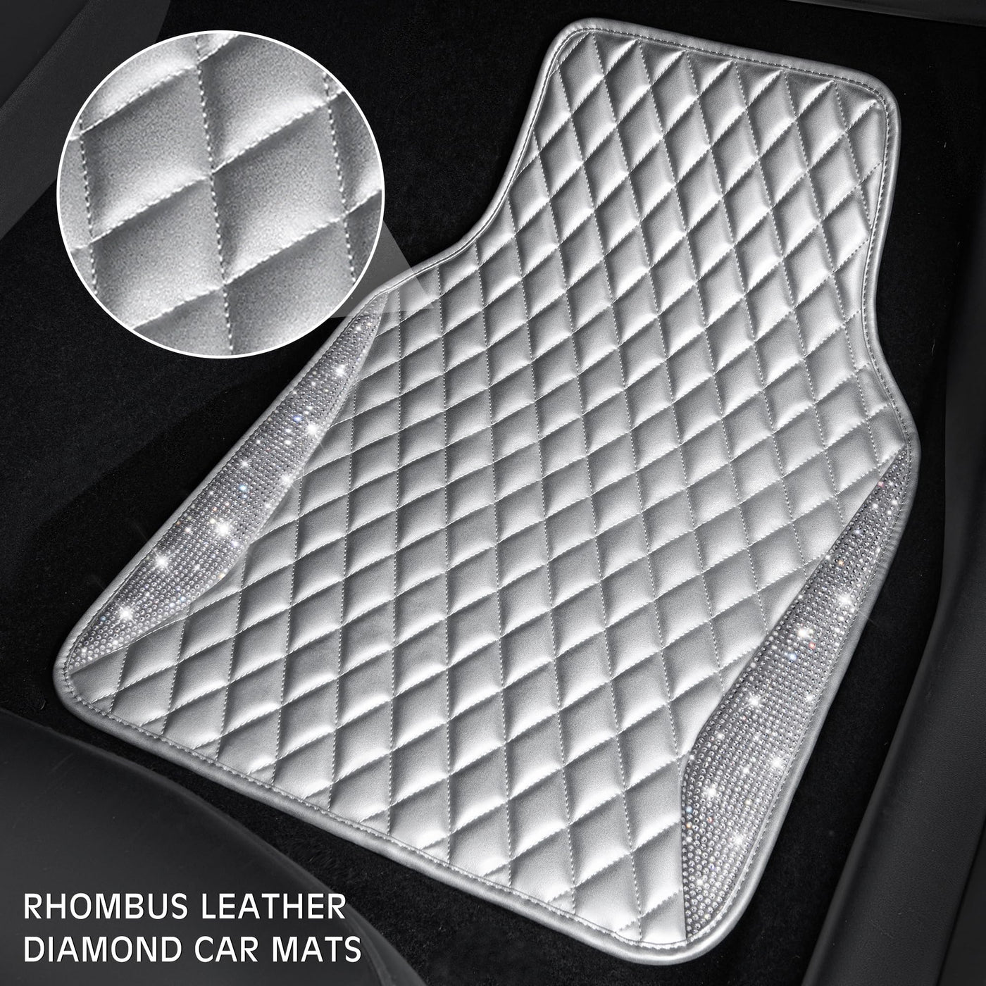 CAR PASS Bling Leather Car Mats Shining Diamond Floor Mats Crystal Rhinestone Sparkly Glitter Carpet Anti-Slip Waterproof Pad Un