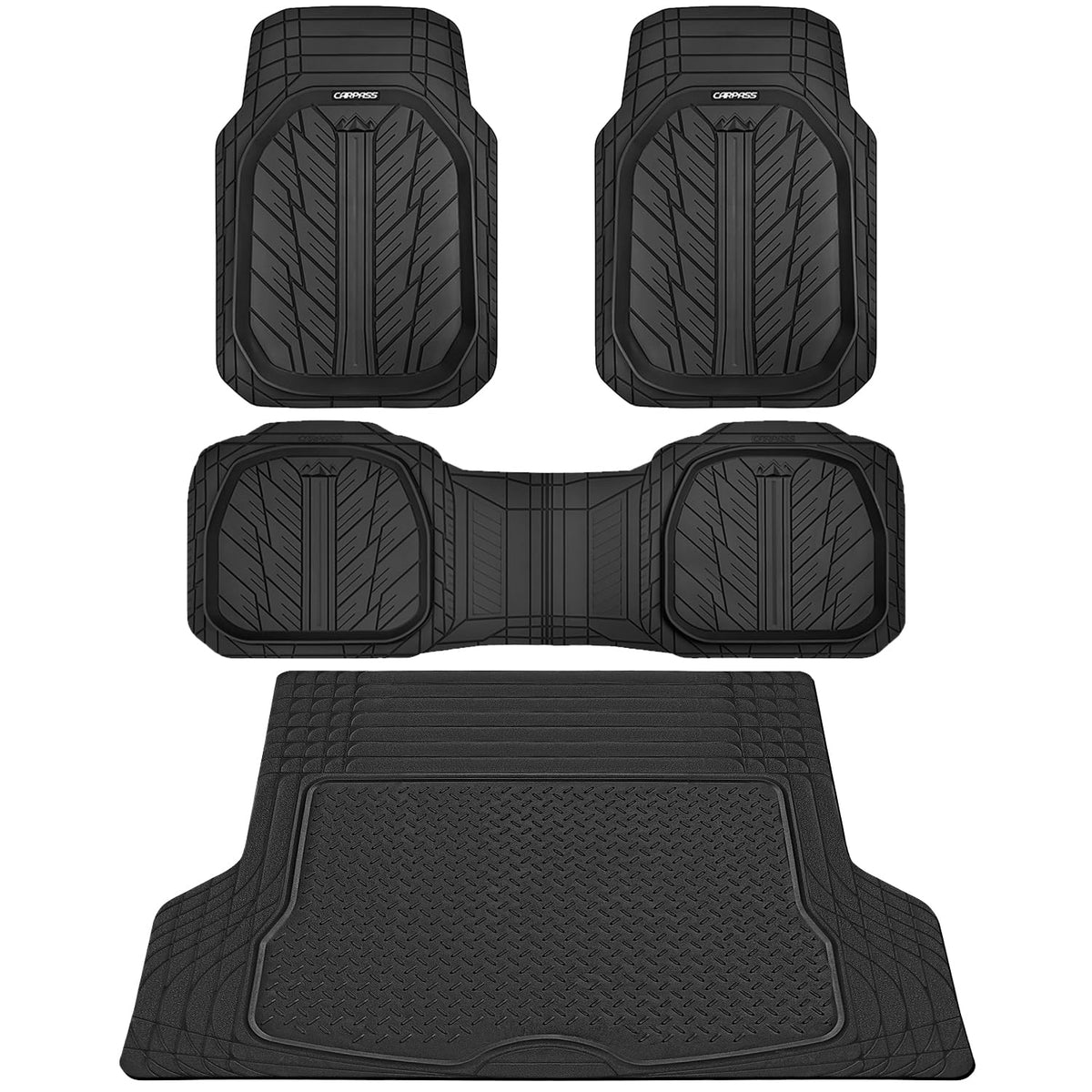Car Pass Deep Dish Floor Mats For Cars, Heavy Duty Rubber Floor Mats With Trunk Cargo Liner, Universal Trim-To Fit Automotive Fl
