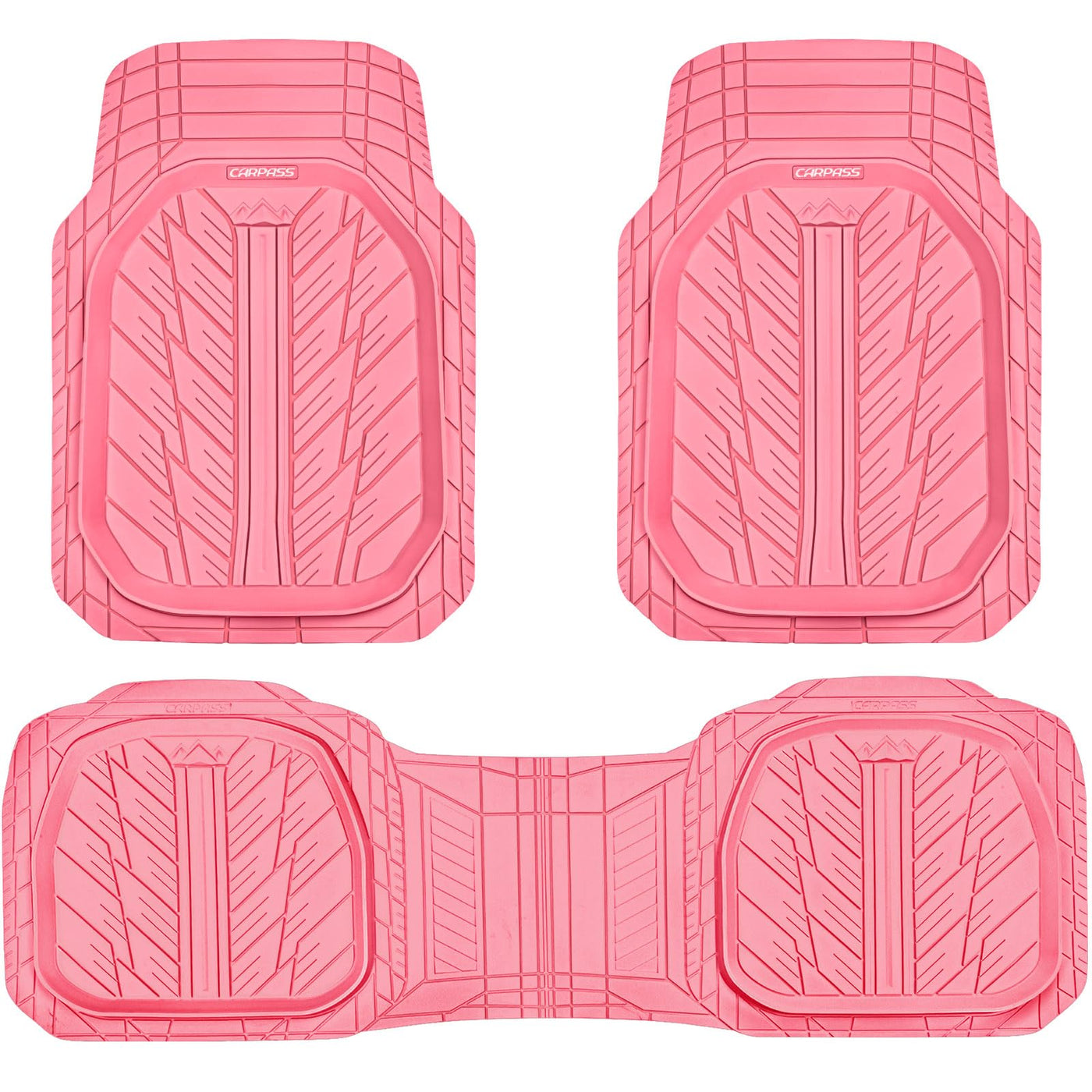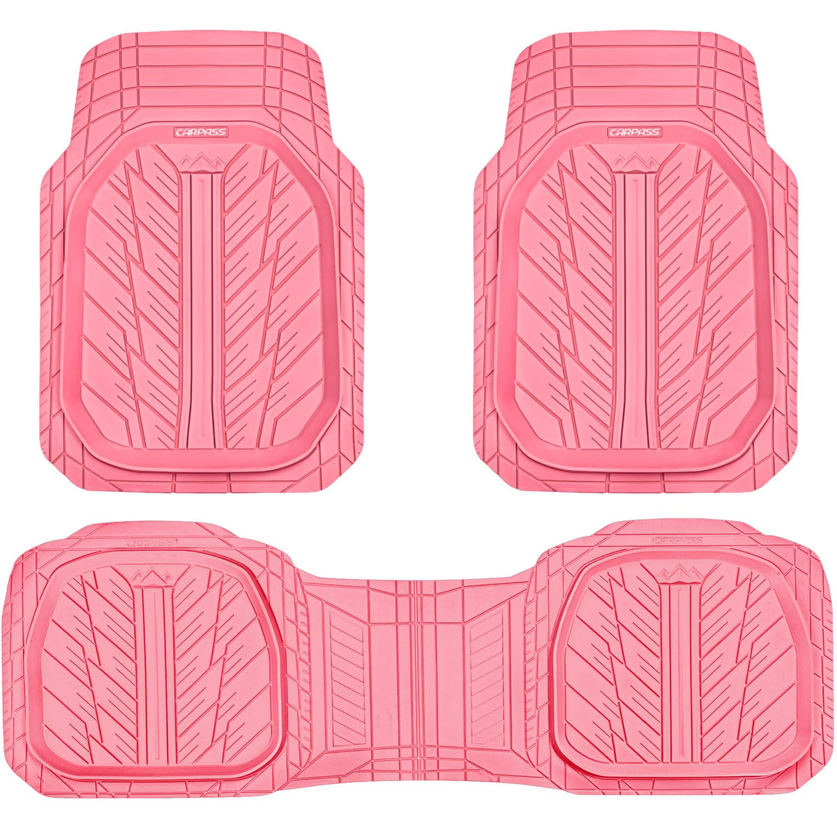 Car Pass Deepdish Pink Floor Mats For Cars Full Set,Heavy Duty Rubber Car Mats 3-Piece,Universal Waterproof Trim-To Fit Automoti