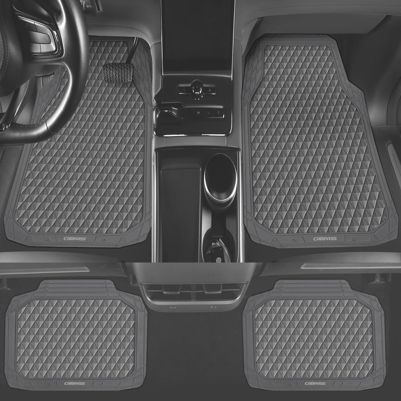 CAR PASS Gray Rubber Car Floor Mats & Cargo Liners, Durable Anti-Slip 3D Rhombus Waterproof Automotive Pad Trim Fit Liner All-We