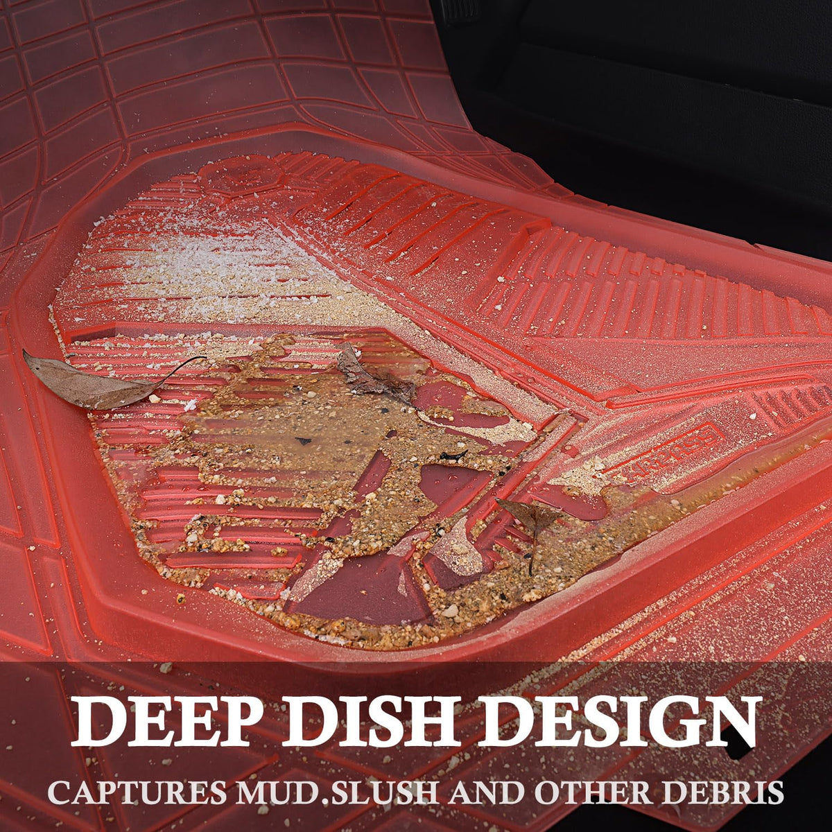 All Weather Protection: The CAR PASS Heavy-duty Deep-Dish rubber car floor mats use for all season odorless durability Protect your car floors from dirt and debris wear resistant. Easy to clean. DeepDish design of the car mats can holds water, snow, mud, and road salt All Weather-Proof. | Trimmable & Universal Fit: There are cuttable lines on the sides of mats, which can be modified according to your vehicle size for a perfect fit. Fast and easy to install in most cars, trucks and SUVs. Thick, heavy duty mats & Liners. Flexible for floor contours and tough for all weather conditions. | Anti-Slip Design: The heavy duty car mats use anti slip nail bottom on the back of the mat, which can grip your vehicle's carpet tightly to ensure these floor mats stay in place. | Built for Performance: These Odorless durable rubber polymer mats are tested for extreme conditions to ensure they don't crack, deform , curling, cracking, or hardening. Widely applicable to various environments. | Dimensions: Total of 3 mats - Set of 2 front mats, 1 rear mat for full coverage. Front Mats, 29.1'' x 20.5''. Rear Mats 17.7'' x 57.1''. Both the front and rear seats can be cut according to your desired size. The rear seat mat can be cut into 2 pieces, which is also suitable for cars with obstacles in the middle of the rear seat.
