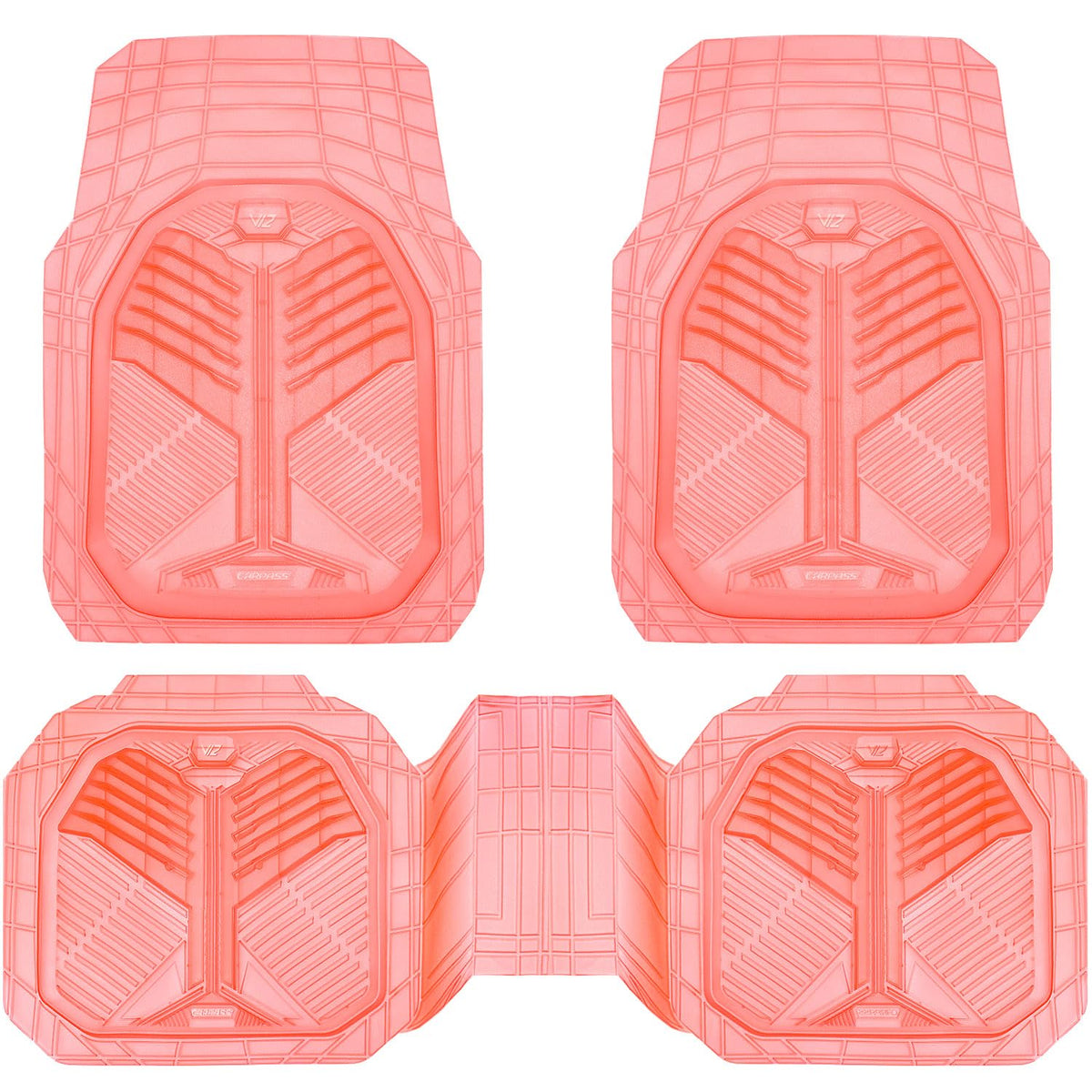 Car Pass Heavy Duty Rubber Car Mats, Deep-Dish All Weather Car Floor Mats Girly For Women, Universal Trim-To-Fit For Suvs Trucks