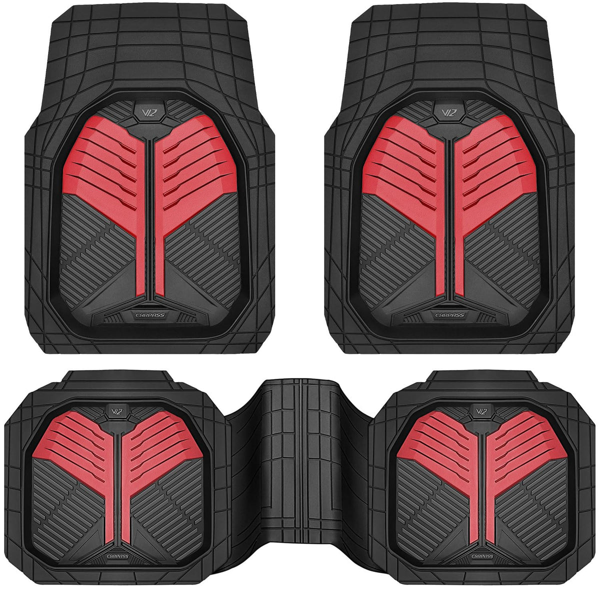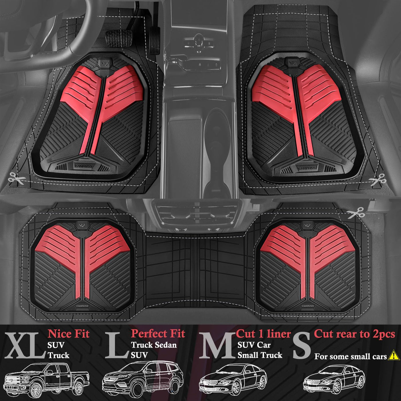 Car Pass Heavy Duty Rubber Car Mats, Deep-Dish Car Floor Mats All Weather, Universal Two-Tone Trim-To-Fit For Suvs Trucks Sedans
