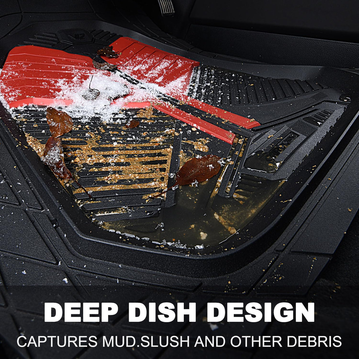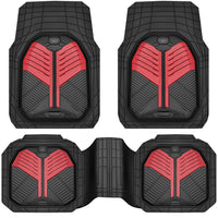Product Features The heavy-duty mats are made from a durable rubber polymer and a ridged design that holds water, mud, and sand. No matter what season it is, these all-weather mats are engineered to stay flexible. Fast, easy installation in most cars, trucks, and SUVs, these front and rear mats can also be trimmed with a pair of scissors to provide the perfect custom fit. This 3-piece set with nail bottom will keep them securely in place. 1. Maximum protections for your car's floor against rain, snow, mud, dirt, debris, food, coffee, mess, spills, stains. 2. Simply cut through the lines until you find the perfect fit! 3. Specially designed anti-slip back surface and clips catches the ground carpet of your car. 4. These mats are durable and long lasting and will withstand normal wear and tear.