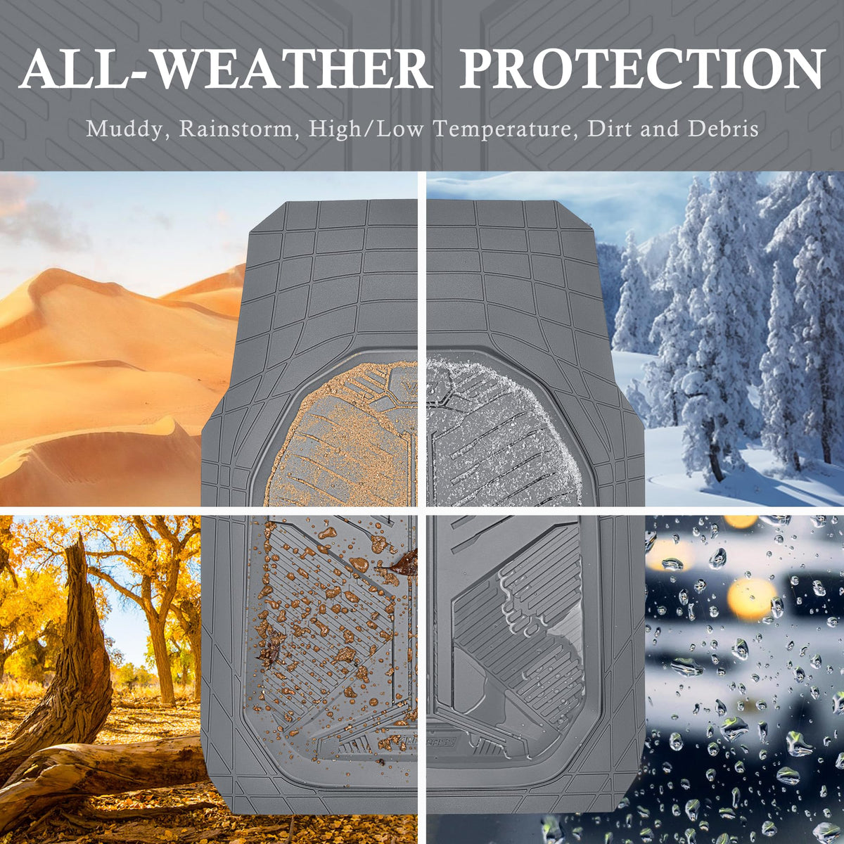 Heavy Duty Car Floor Mats, All Weather Car Mats Full Set, Universal Automotive Mats 3 Pieces Trim to Fit for Sedans SUVs Trucks, Deep Dish Waterproof Anti-slip Rubber Floor Mats, Dark Grey CAR PASS