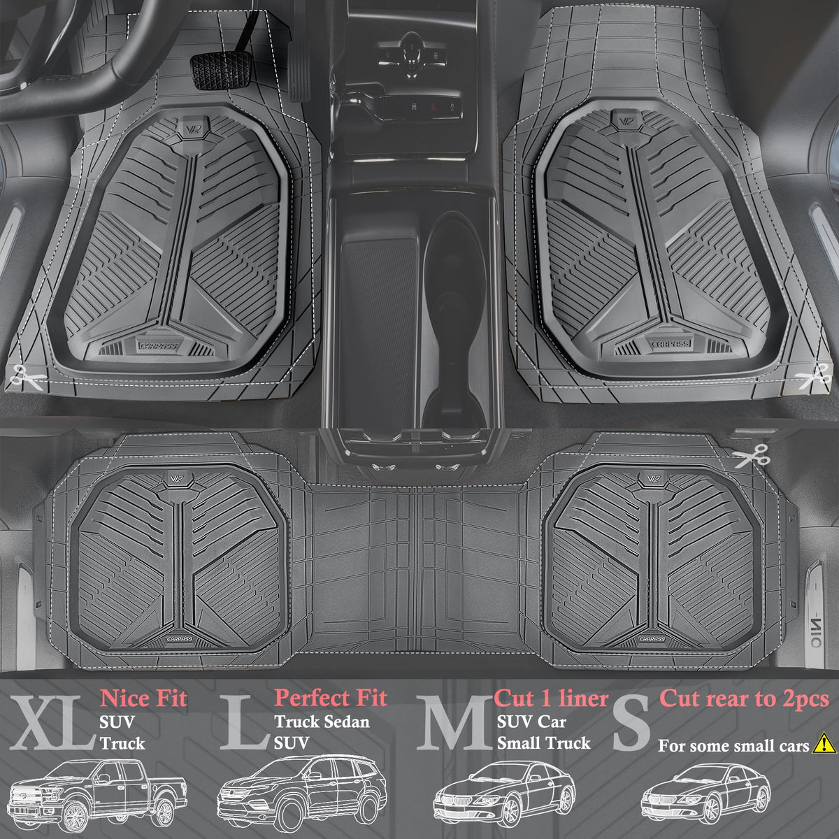 Car Pass Heavy Duty Rubber Car Mats, Deepdish All Weather Floor Mats For Car Full Set, Universal Automotive Mats Trim To Fit For