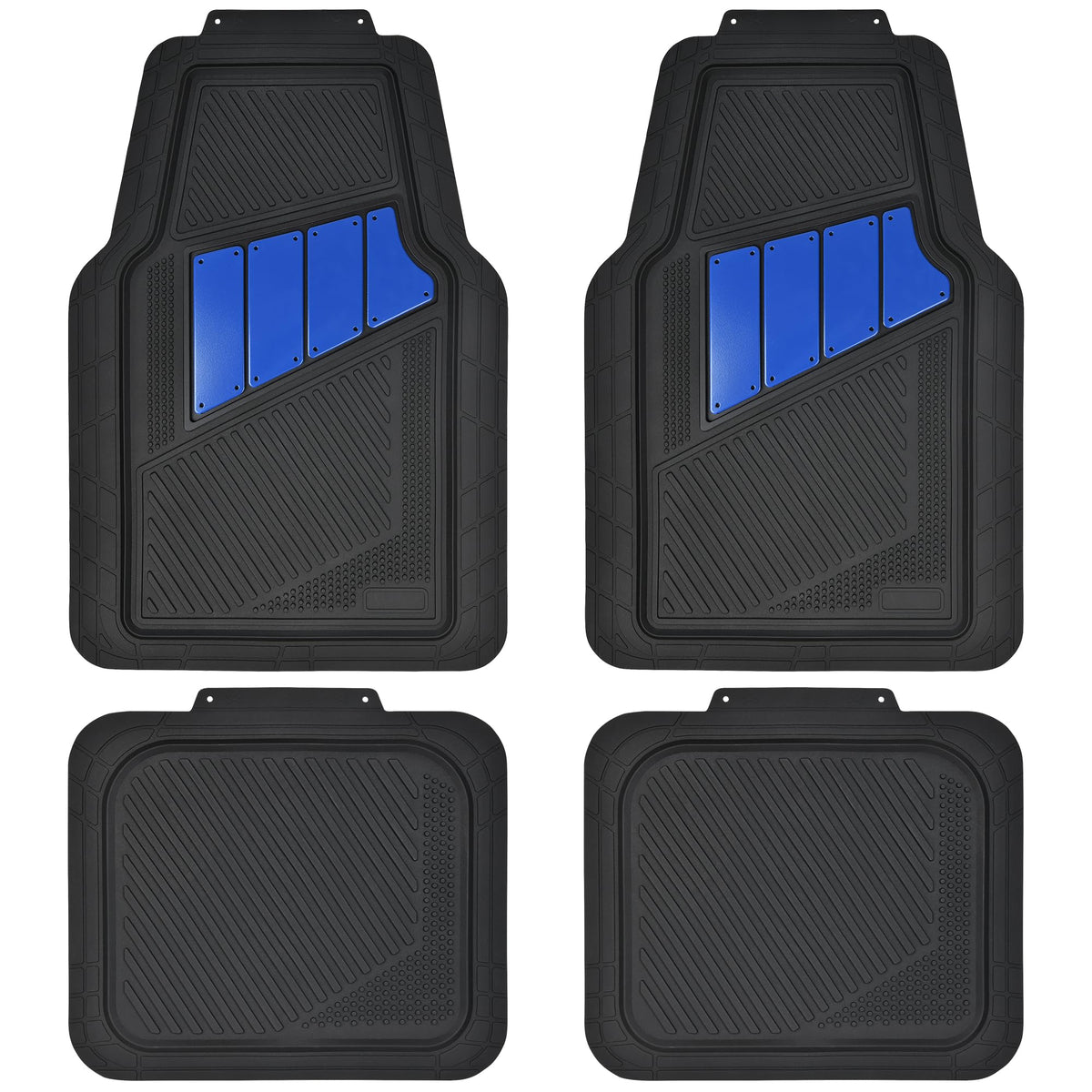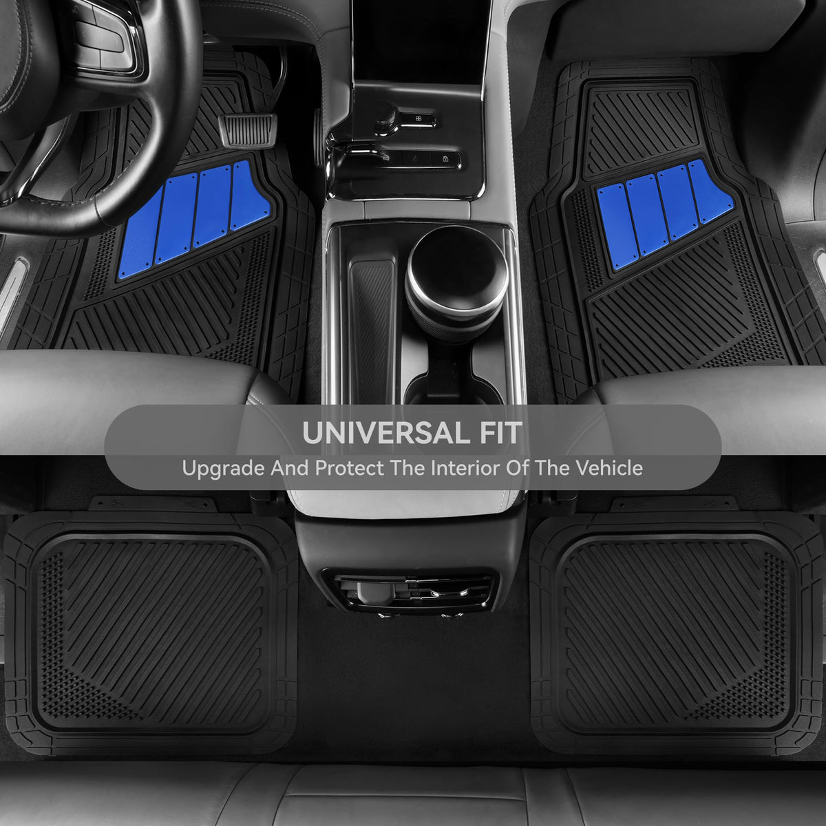 CAR PASS Heavy Duty Rubber Floor Mats 4-Piece Car Mat Set - Universal Waterproof Trim to Fit Floor Mats for Car SUV Truck, Durable All-Weather Mats (Black Blue)