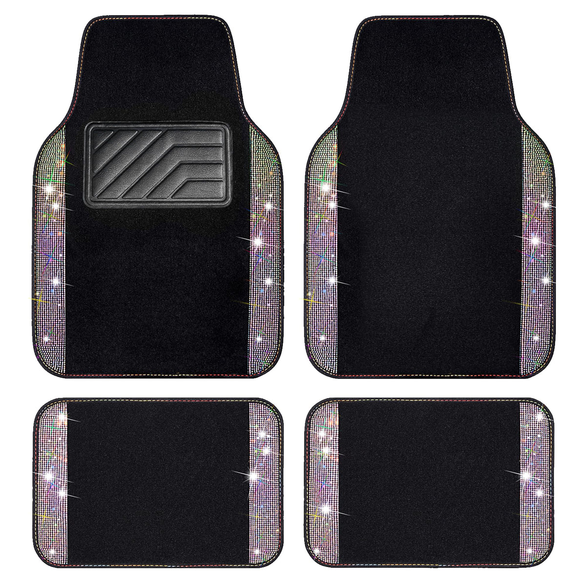 Car Pass Iridescent Bling Rhinestones Diamond Car Floor Mats Waterproof, Anti-Slip Pvc Heel Pad, Universal For Automotive Suv,Sedan,Van,4Pcs Girl Women Lady(Multicolor Colorful Crystal Sparkly Shining