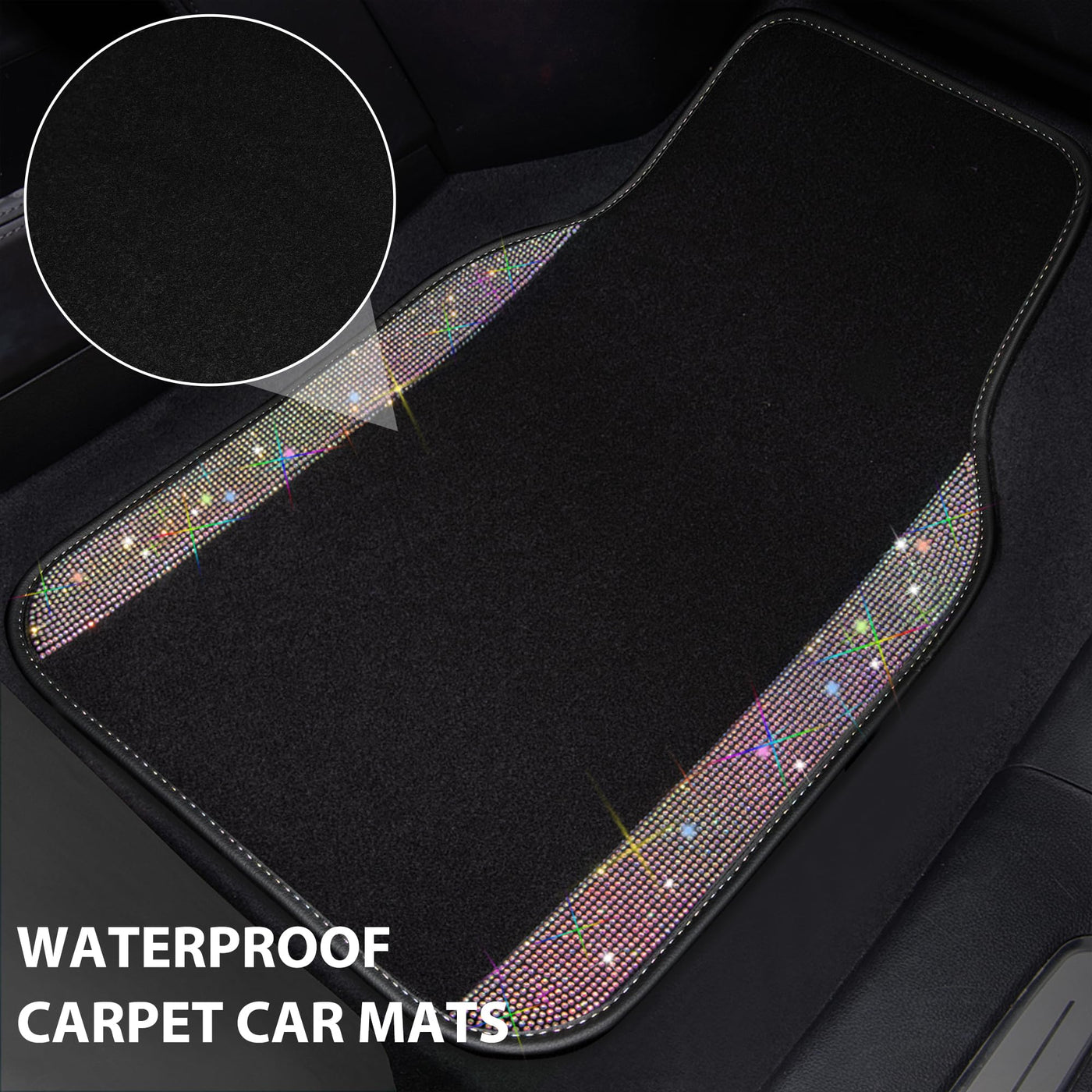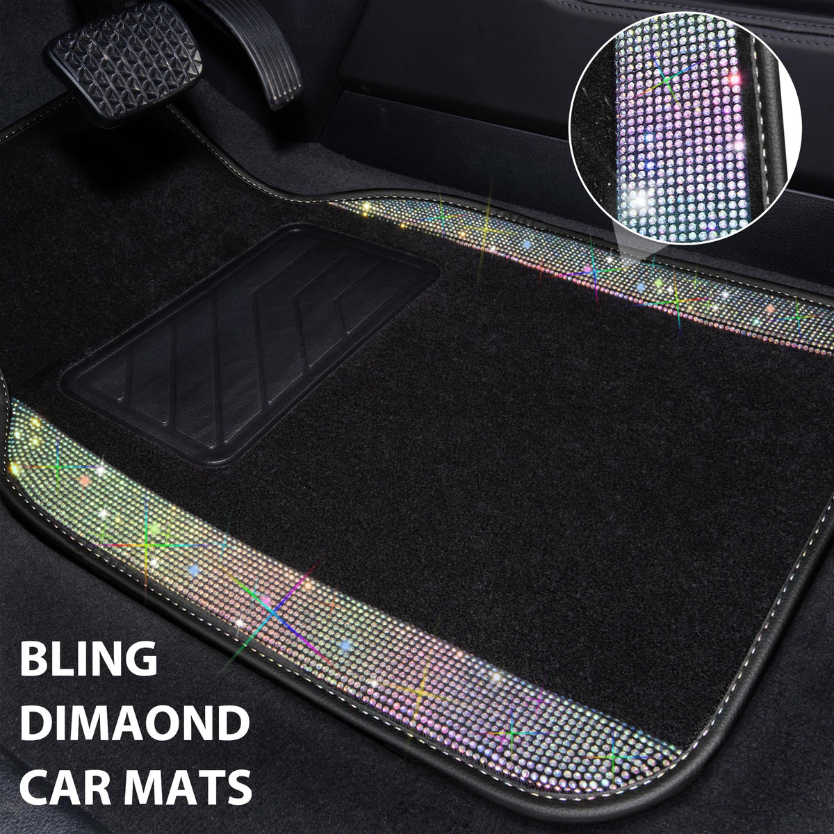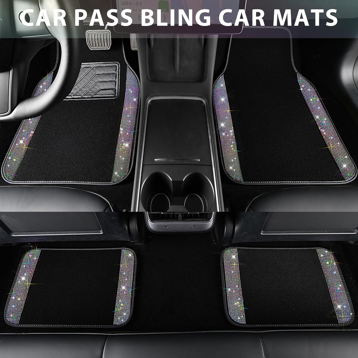 Q: Do the rhinestones on the CAR PASS floor mats stay in place?A: Absolutely! The shiny diamonds on the CAR PASS floor mats are securely made and do not fall out, ensuring that your mats maintain their sparkling appearance over time.