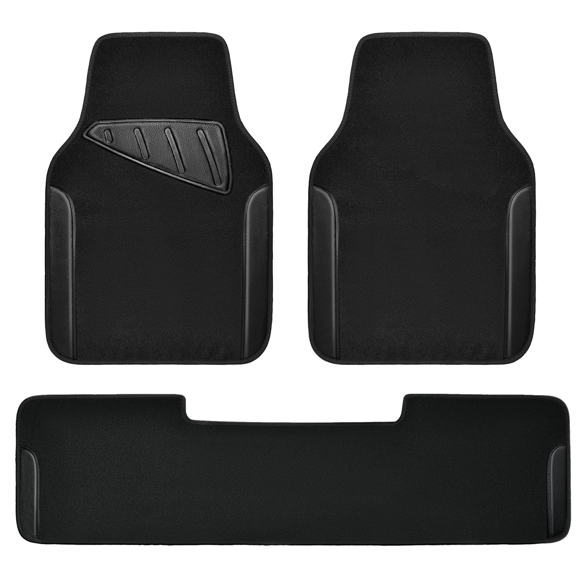 Car Pass Waterproof Universal Faux Leather 3Pcs Car Floor Mats, Black Car Mats Fit For Suv,Vans,Sedans, Trucks,Set Of Vehicles Car Carpet With Driver Heel Pad And Anti-Slip Nibs Backing (Black 3Pcs)