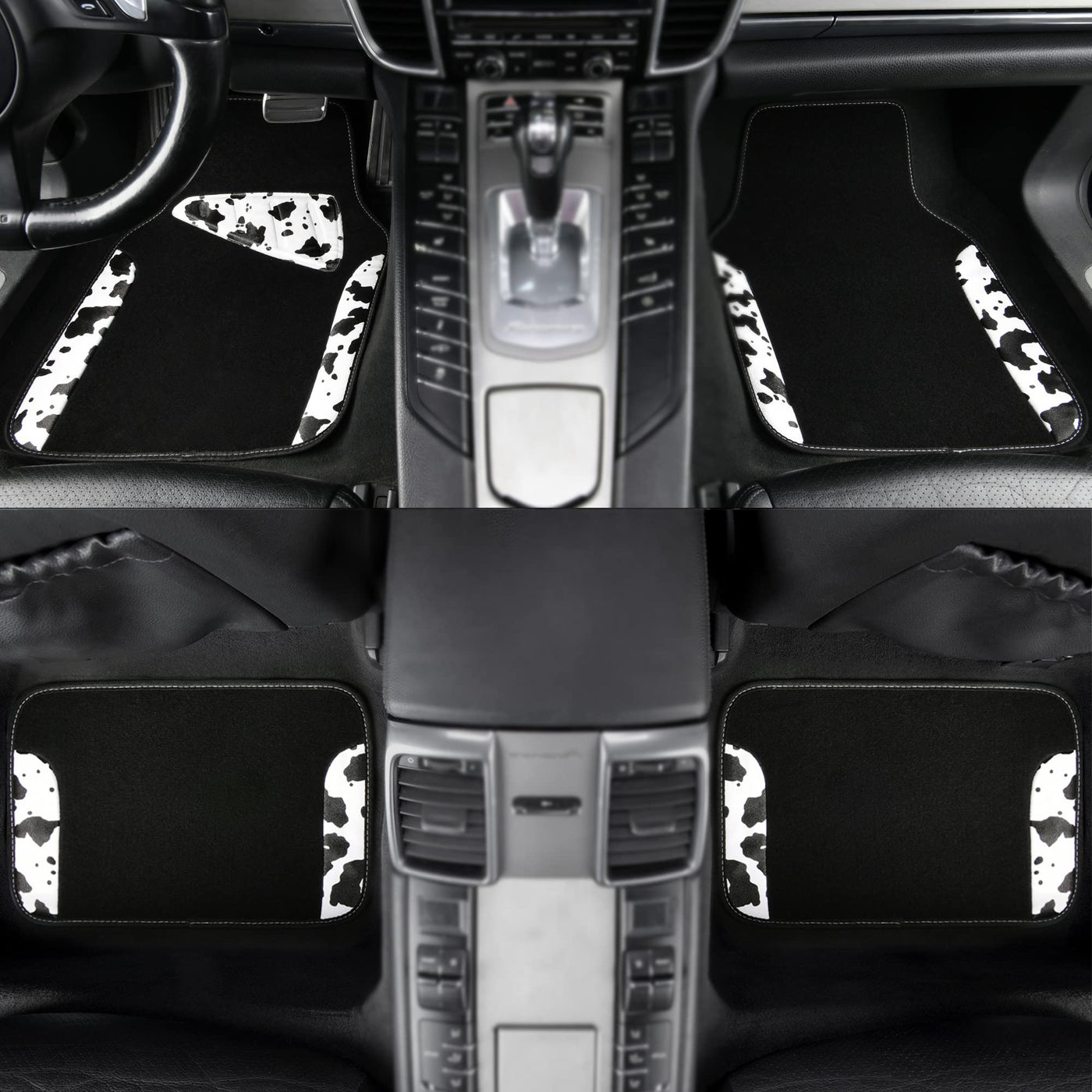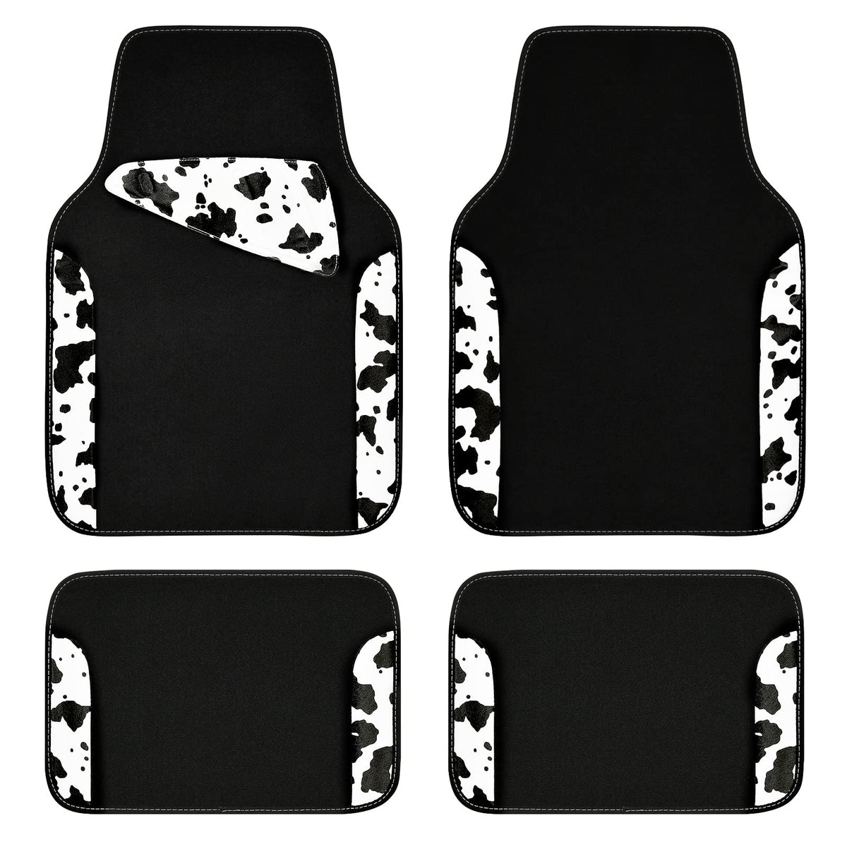 Car Pass Waterproof Universal Fit Car Floor Mats, Cow Print Car Mats Fit For Suv,Vans,Sedans, Trucks,Set Of 4Pcs Car Carpet With Driver Heel Pad And Nibs Backing,Or Cute Women Girly Funny Black White