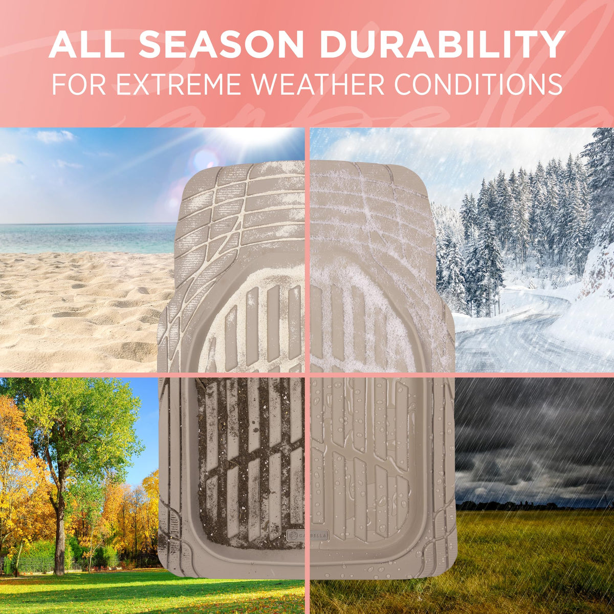 Carbella Heavy Duty Rubber 4-Piece Beige Car Floor Mats - Universal Trimmable All-Weather Car Accessories - Girl Car Accessories