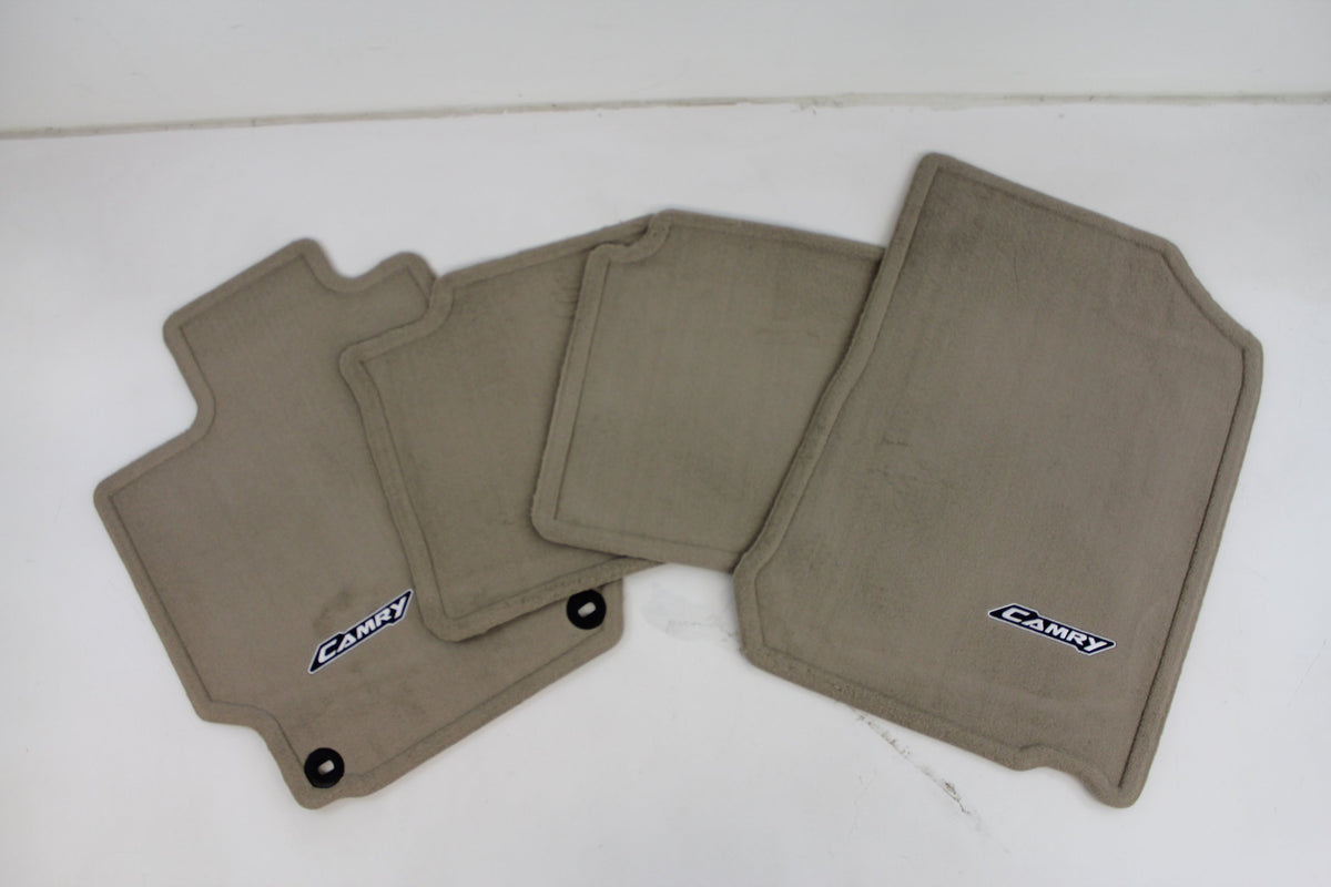 Color coordinated floor mats protect your original carpeting while adding some flare with the Camry embroidered logo. The non-skid backing and positive retention clip help prevent them from sliding. Carpet floor mats are custom fitted to vehicle floor pattern. Enhances interior appearance and provide optimal protection to original carpet. No-slip, nibbed underside prevent mats from sliding. Embroidered with Camry logo. Color matched to vehicle interior; available in ash, dark charcoal and bisque. Constructed of high grade plush nylon carpeting. Helps keep original interior carpet clean. Long lasting Toyota quality.