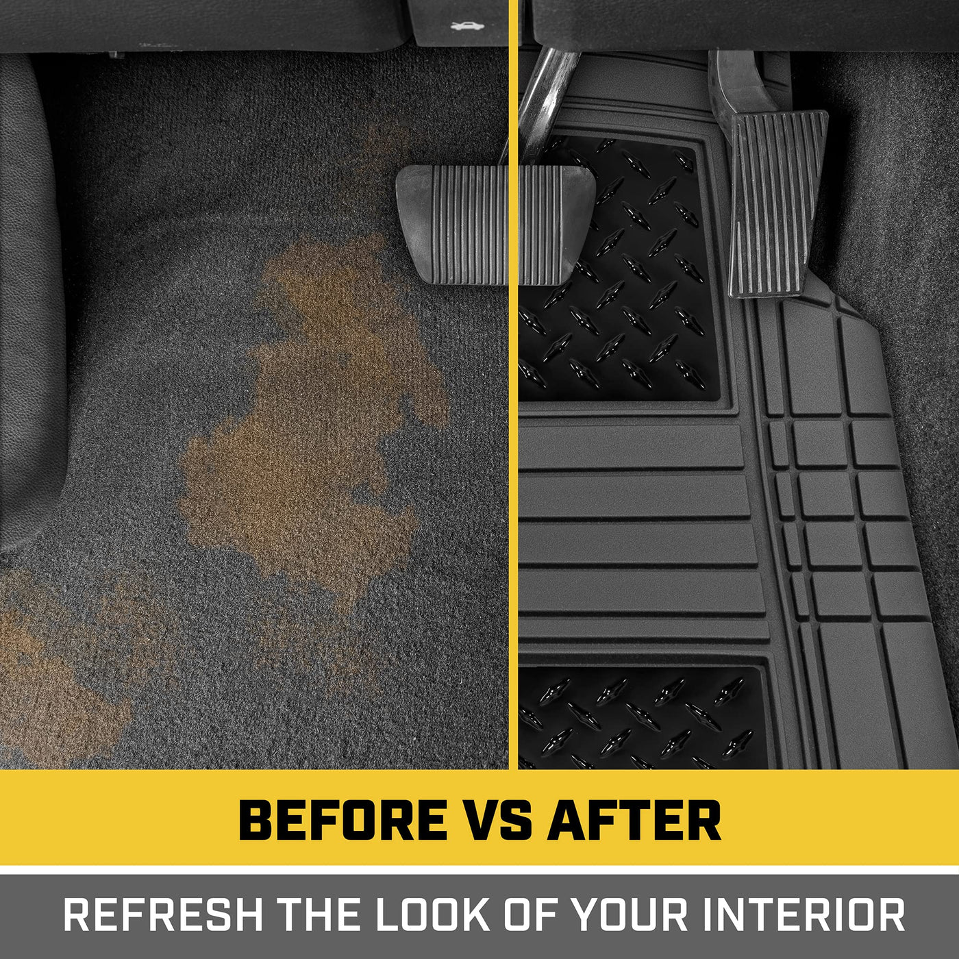 CAT DiamondShield Rubber Floor Mats for Cars Trucks SUVs, All Weather Protection Front & Rear Car Mats Set, Heel Pad & Anti-Slip