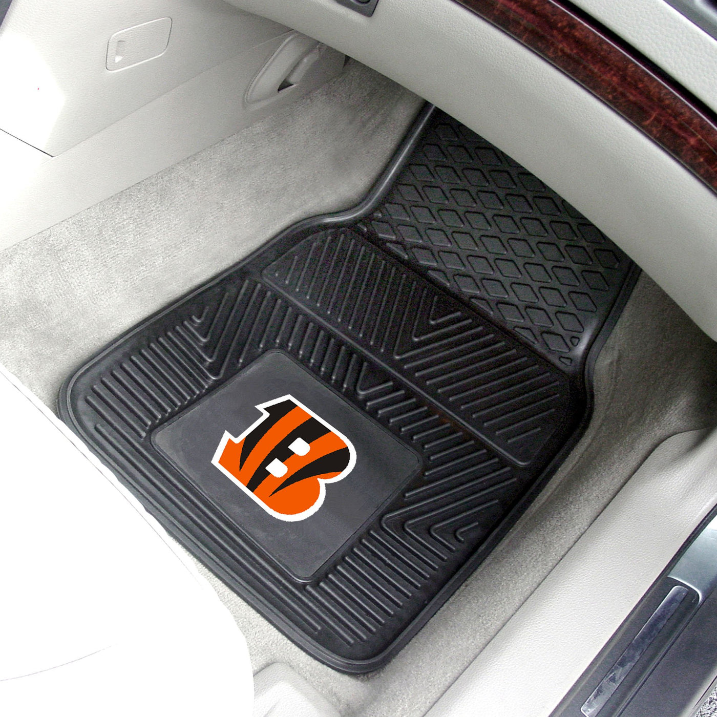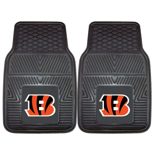 Q: What are the dimensions of the FANMATS 8891 Cincinnati Bengals Car Mat Set?A: The FANMATS 8891 Cincinnati Bengals Car Mat Set has dimensions of 17 inches by 27 inches, making it a universal size suitable for all vehicle types.