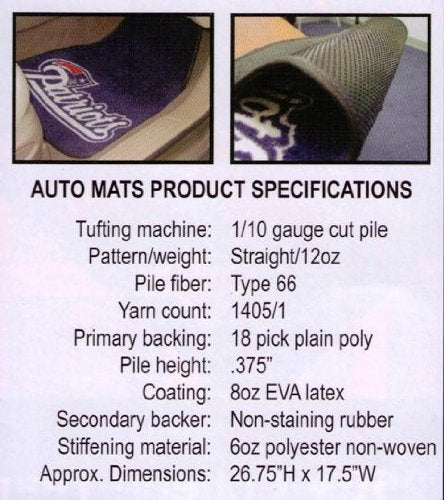 Show Your Fandom Even While Driving With Carpet Car Mats From Sports Licensing Solutions. Made In The U.S.A. With 100% Nylon Carpet. Nibbed Backing Keeps Mat In Place And Prevents Skidding While Driving. Universal Fit For All Vehicle Types.