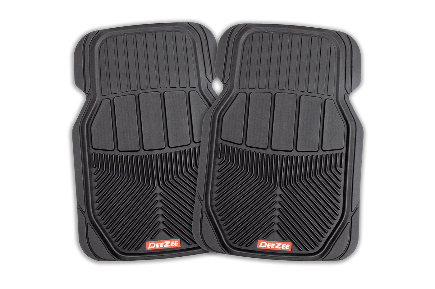 Dee Zee Floor Mats - Protects the interior of your vehicle. Constructed of thick, tough, and durable OEM-style rubber. Deep groves hold water, mud, and snow - keeping it away from your vehicles interior. Raised pattern to increase traction. Rubber cleats on bottom keep mat in position. Sold in pairs. Universal fit - trim-able design to fit nearly any vehicle.