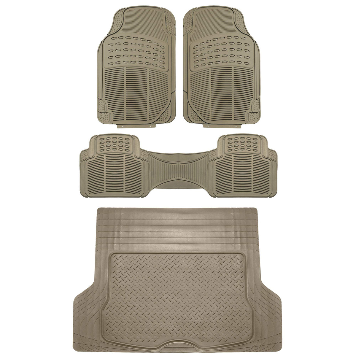 Fh Group Climaproof Trimmable Non-Slip Vinyl Floor Mats Full Set - Universal Fit For Cars Trucks And Suvs (Beige) F11306 + F1640