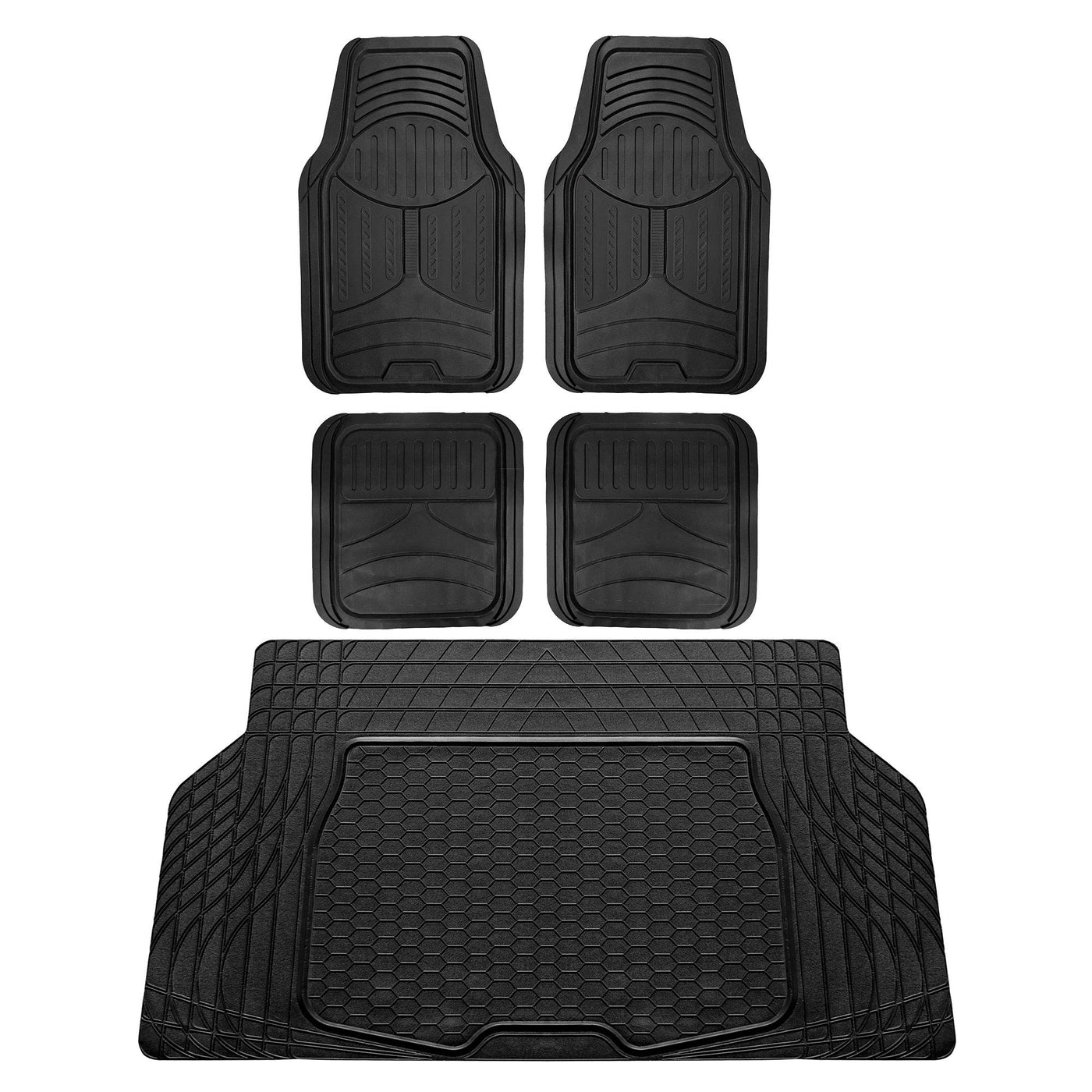 FH Group Monster Eye Full Set Rubber Floor Mats w. Trimmable Vinyl Trunk Liner/Cargo Mat Black- Fit Most Car, Truck, SUV, or Van