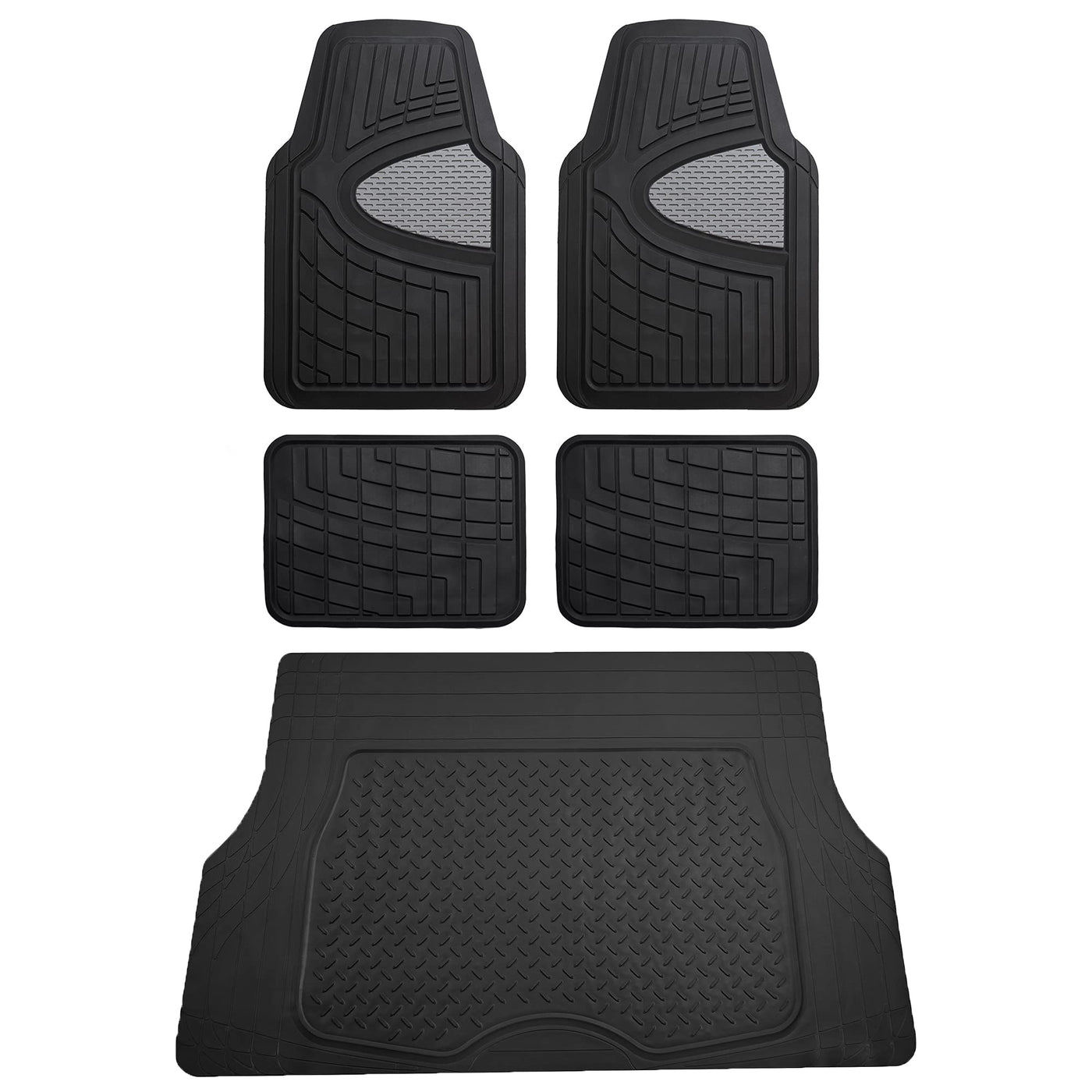 Fh Group Premium Liners Tall Channel Trimmable All Weather Rubber Full Set Car Floor Mats (Gray) W. Trimmable All-Season Cargo L