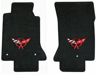 Fits 1997-2004 C5 Corvette Classic Loop Black Floor Mats Set Crossed Flags Logo In Red Black In Color Red Crossflag Logo For Use On Any 1997-2004 C5 Corvette Made With The Interior-Matching Black Fabric Color