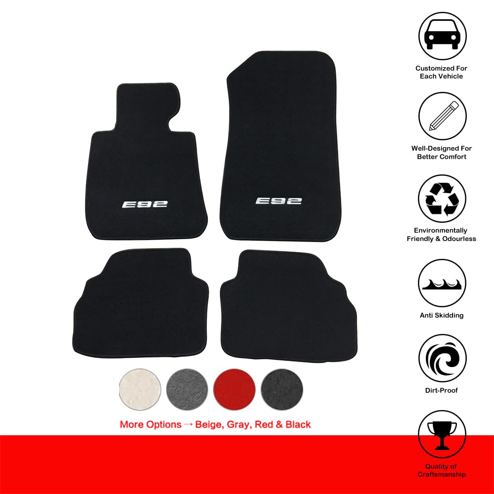 Floor Mat Compatible with BMW E92 Logo 3-Series, 2007-2013 Factory Fitment Front & Rear Nylon Car Floor Carpets Carpet Liner by