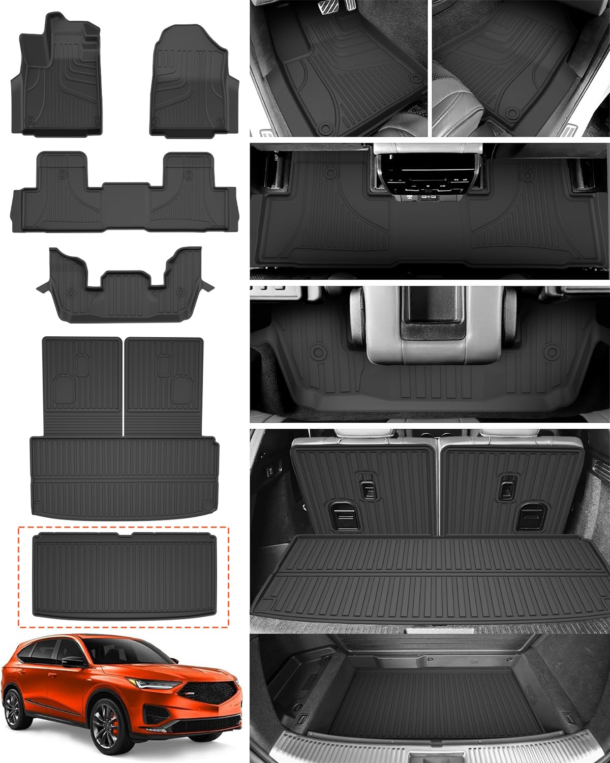 Floor Mats & Cargo Liner & Backrest Mat Fit for Acura MDX 2022-2025 - All Weather Protection TPE Floor Liners with Back Seat Cov
