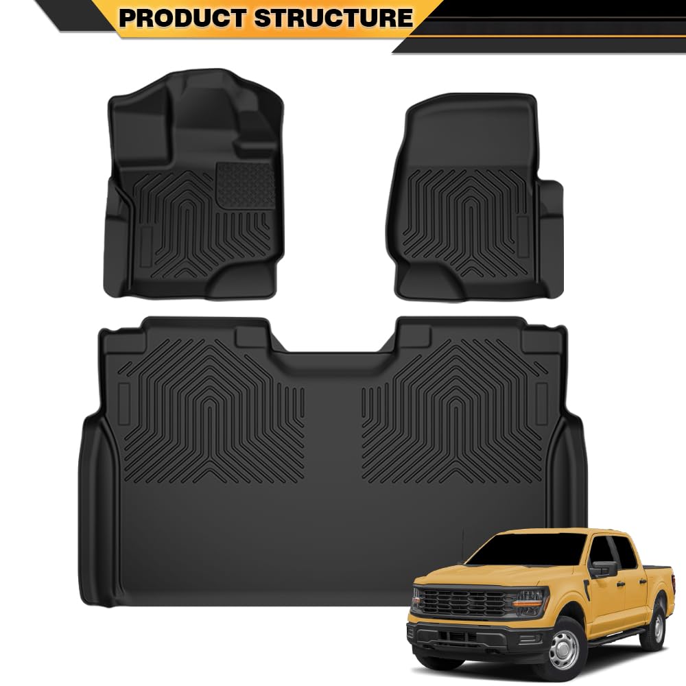3PCS Floor Mats Compatible with Ford F150 Super Crew 2015-2025(Fit 22-24 Lightning Models) All Weather Full Cover Protection Front & 2nd Row Liners Black Floor Liners