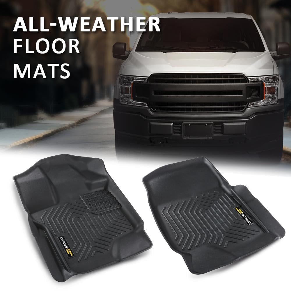 Floor Mats Cargo Liner Compatible with Ford F150 Super Crew 2015-2025(Fit 22-24 Lightning Models) All Weather Full Cover Protection Front Row TPE Floor Liners Accessories 2PCS