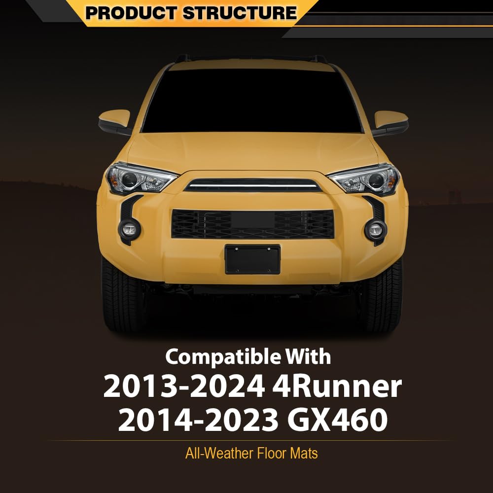 Floor Mats Cargo Liners Compatible with Toyota 4Runner 2013-2024/Fit Lexus GX460 2014-2023 TPE Floor Liner All Weather Full Cover Protection 1st & 2nd Row Black