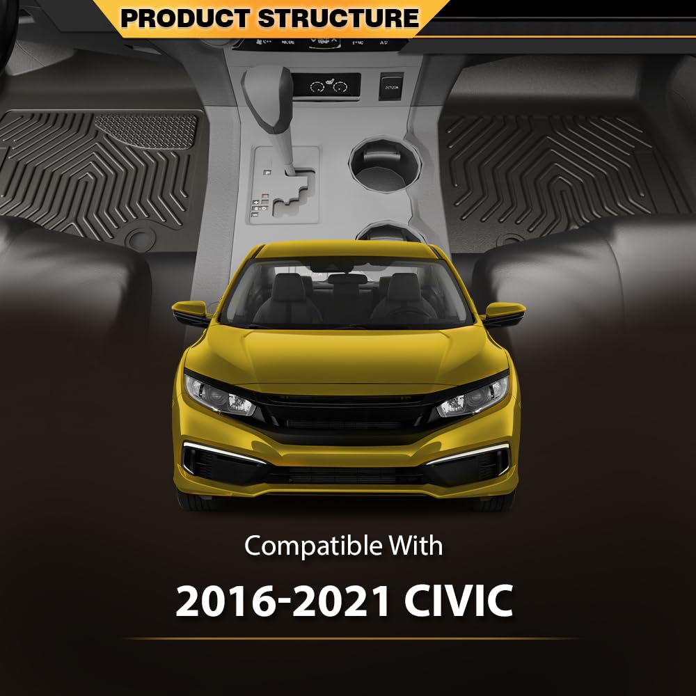 G-PLUS Floor Mats Compatible with 2016-2021 Honda Civic Sedan/Hatchback 4-Door,Fit 2016-2021 Honda Civic Coupe 2 Door,Cargo Line