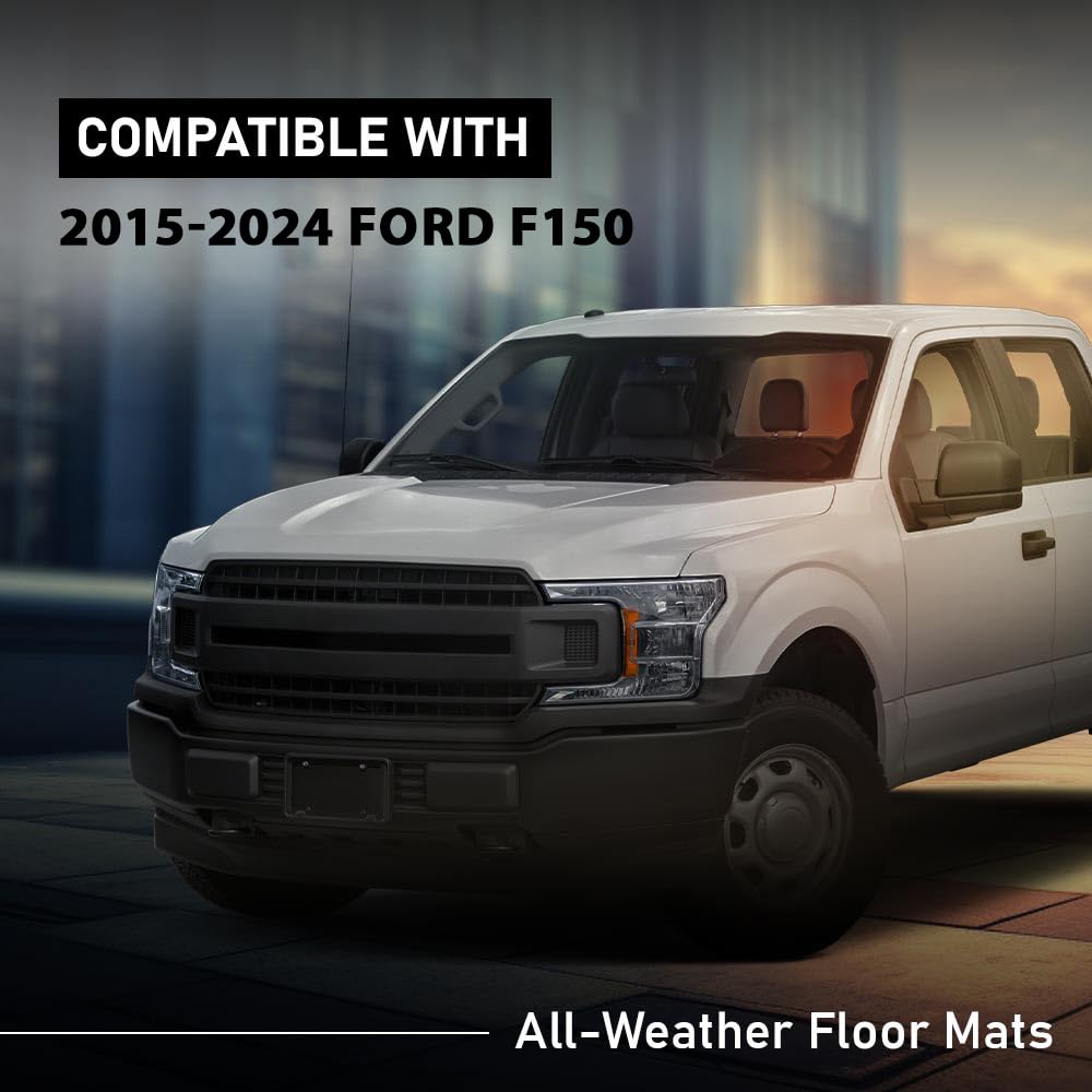 G-PLUS Floor Mats Compatible with Ford F150 2015-2024 Super Crew (Includes 22-24 Lightning Models) w/o Fold Flat Storage TPE All