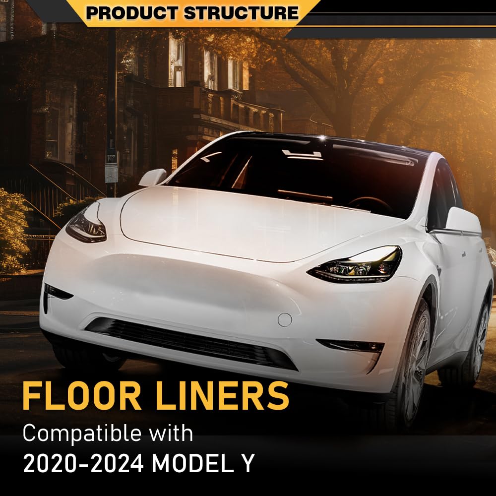 G-PLUS Floor Mats, Compatible with Tesla Model Y 2020-2024(5-Seat),1st & 2nd Row All Weather Full Cover Protection, Black TPE Ca