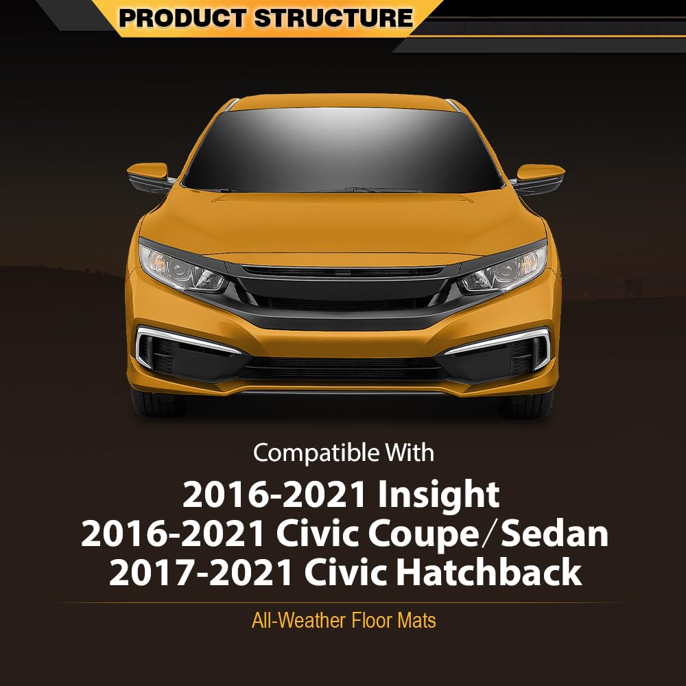 G-PLUS TPE Floor Mats Cargo Liners Compatible with 2016-2021 Honda Insight/Civic Coupe/Civic Sedan 3PCS Black Floor Liners Front